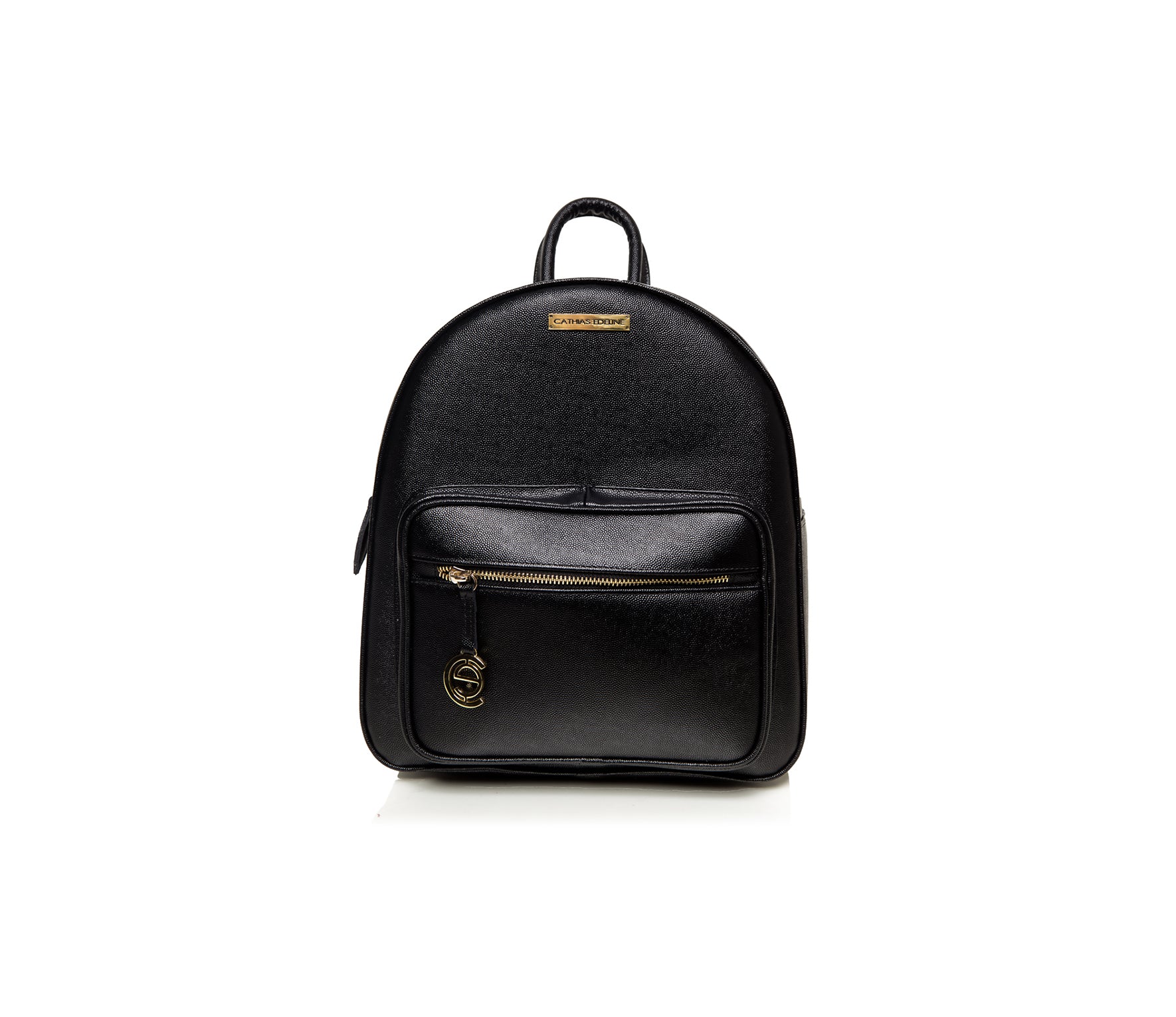 Our Baby Backpack is made out of textured leather in combination with gold metal accessories.Inside, it has a small pouch pocket and outside, a zipped pocket made specially for your cell phone.