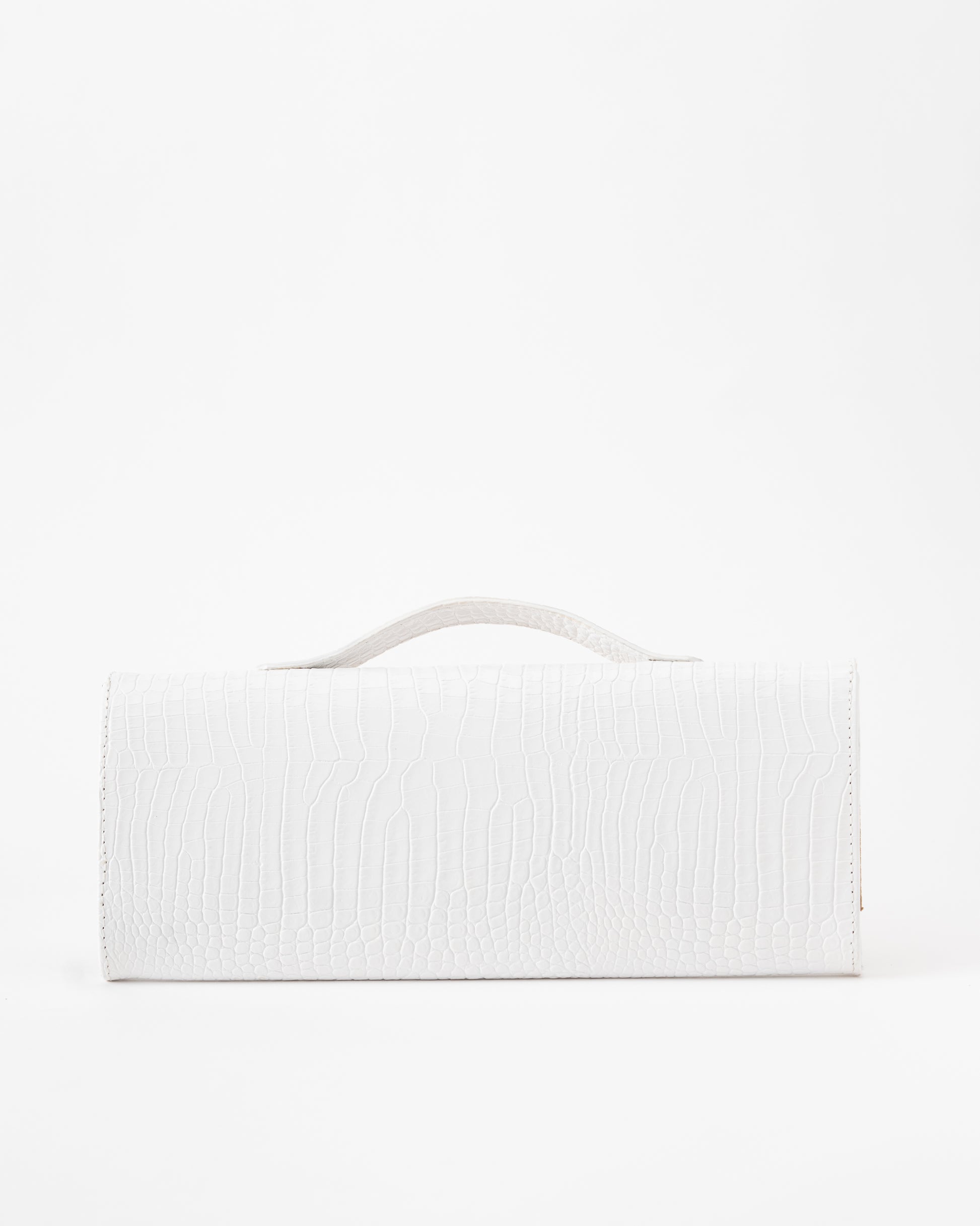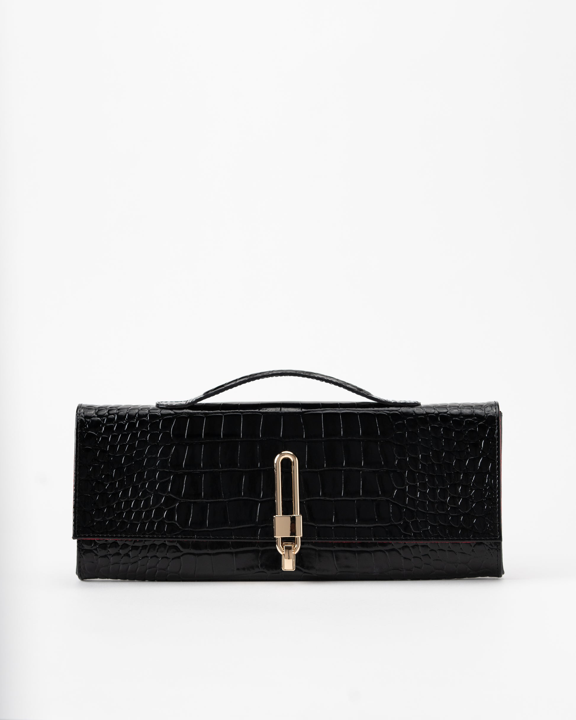 This sophisticated clutch combines timeless elegance with modern functionality. Crafted from premium croc-embossed leather, its sleek black finish exudes luxury and versatility, perfect for both day and evening occasions.