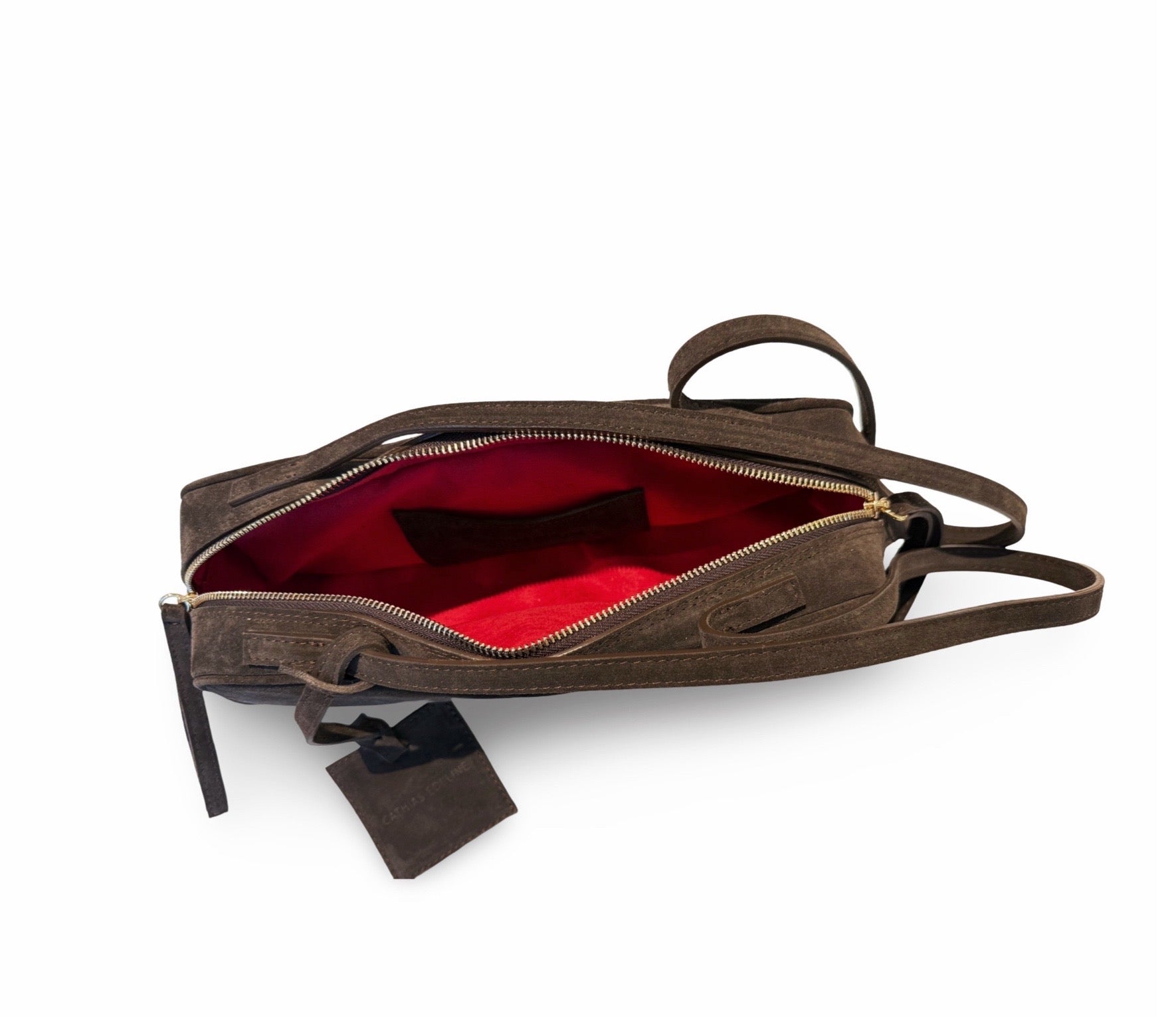 Made from premium suede leather, this bag boasts a buttery-soft texture that is both sophisticated and durable. The innovative no-transfer color technology ensures the suede maintains its pristine appearance without any color transfer, keeping your bag looking fresh and new. We use real leather of the highest quality, sustainably sourced exclusively in Italy complying with the highest EU regulations and standards. Our suppliers are certified carbon neutral, guaranteeing the highest standards of sustainability and sourcing.