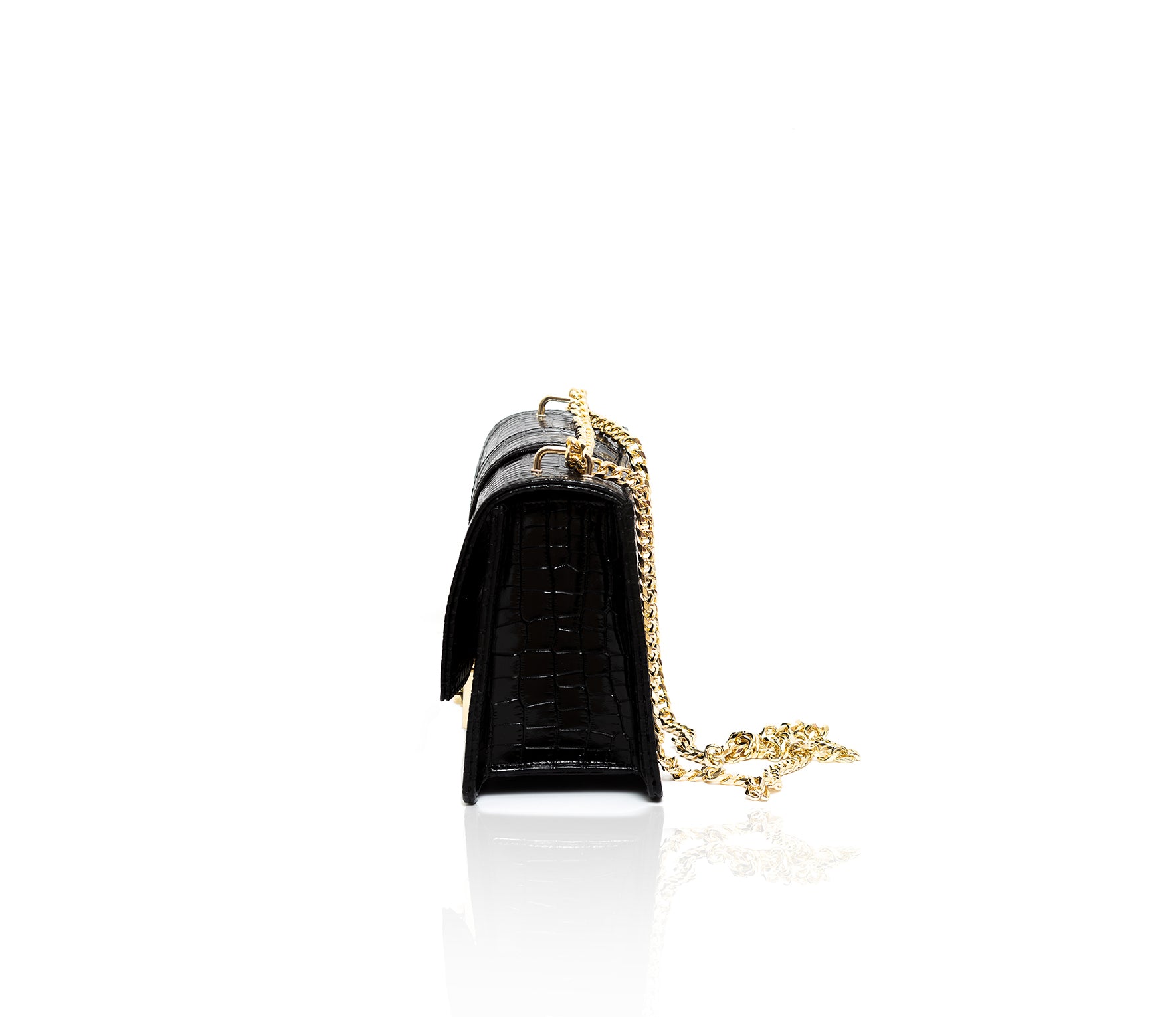 Elevate your style with this luxurious black croc-embossed leather shoulder bag. Perfectly crafted for both elegance and functionality, this bag is a must-have accessory for any fashion-forward individual.