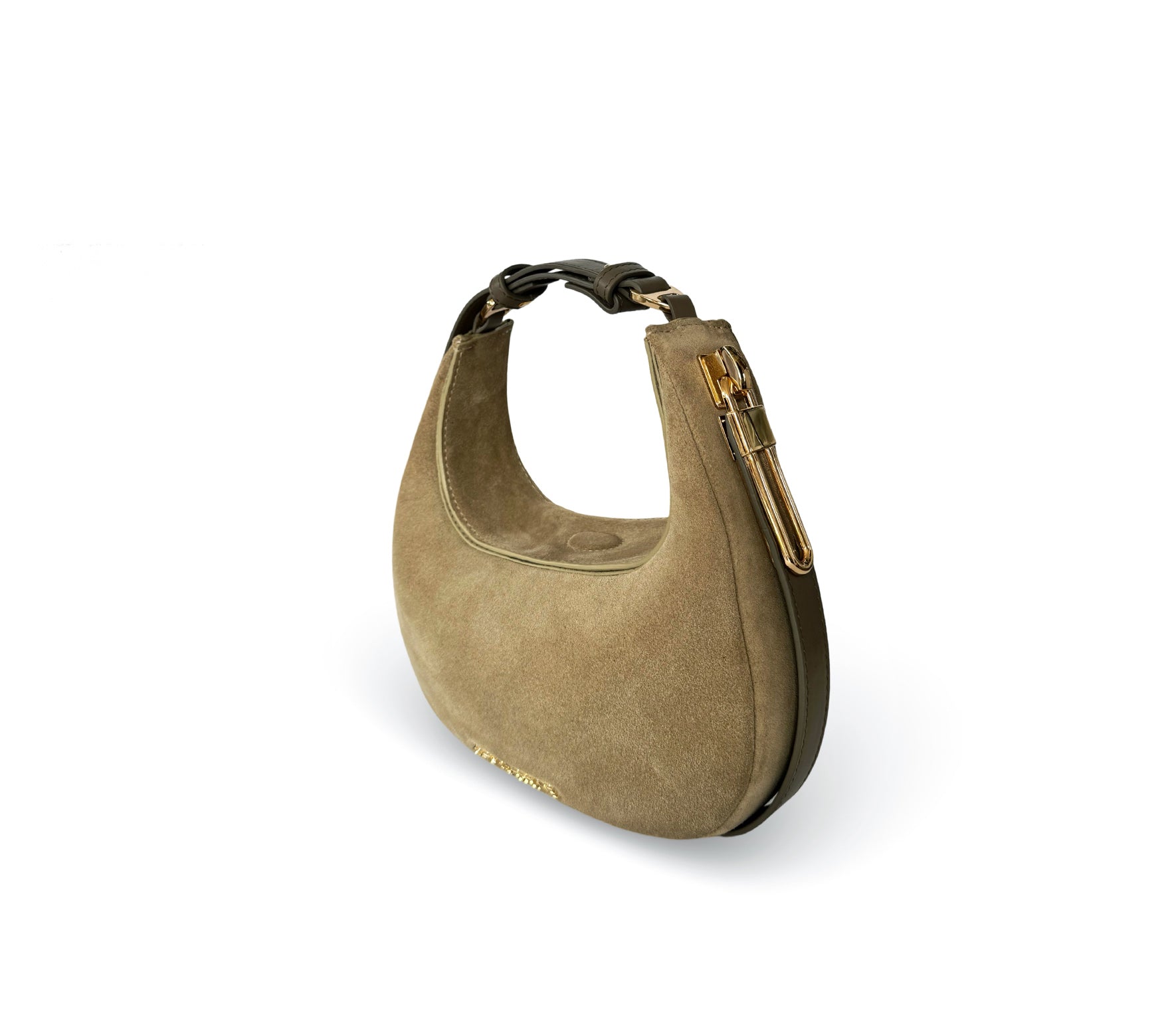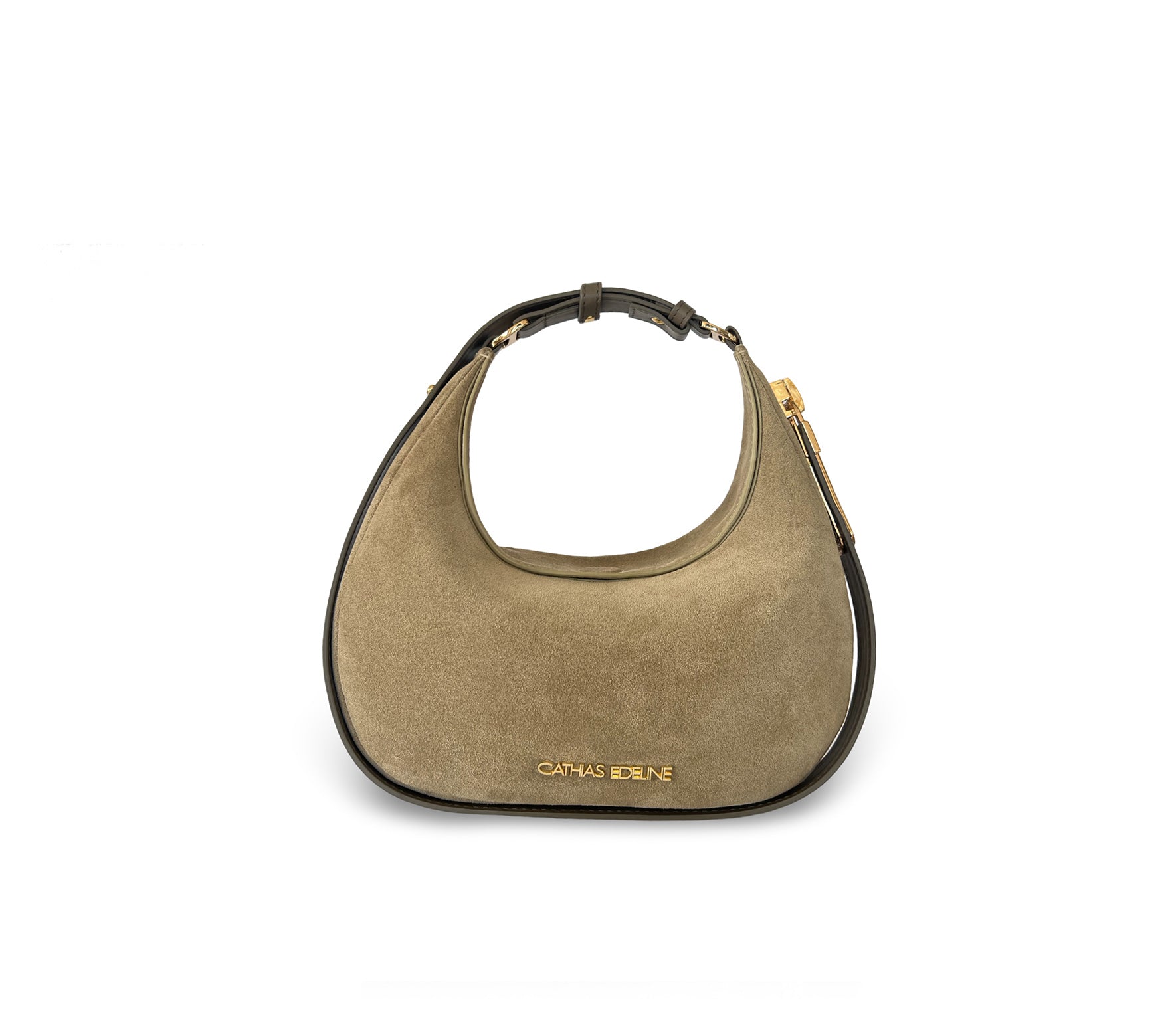 The Moonlight bag features a sleek and minimalist design with a subtle elegance. It includes a discreet, invisible magnetic closure on the flap, offering a seamless and secure way to keep your belongings safe. Inside, you'll find a single pocket, perfect for organizing your essentials such as your phone, keys, or small wallet, providing both functionality and style. The gold accents of the hardware enhance the overall aesthetic, adding a refined sparkle to the sophisticated suede.