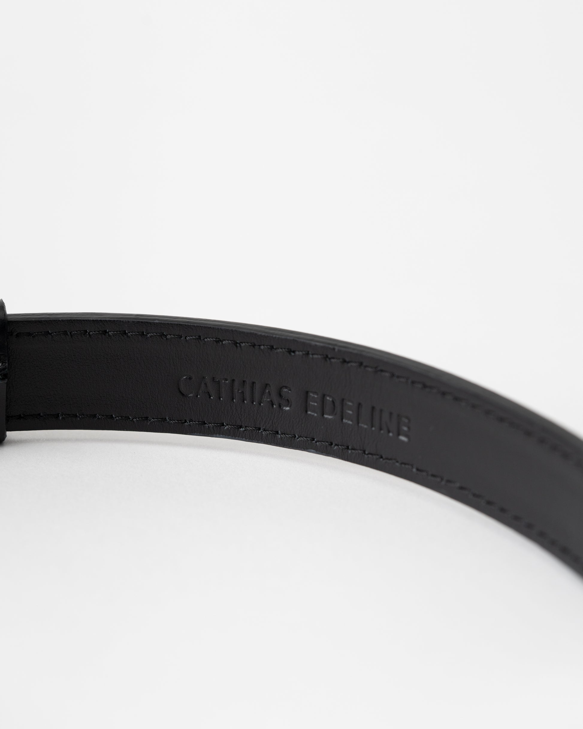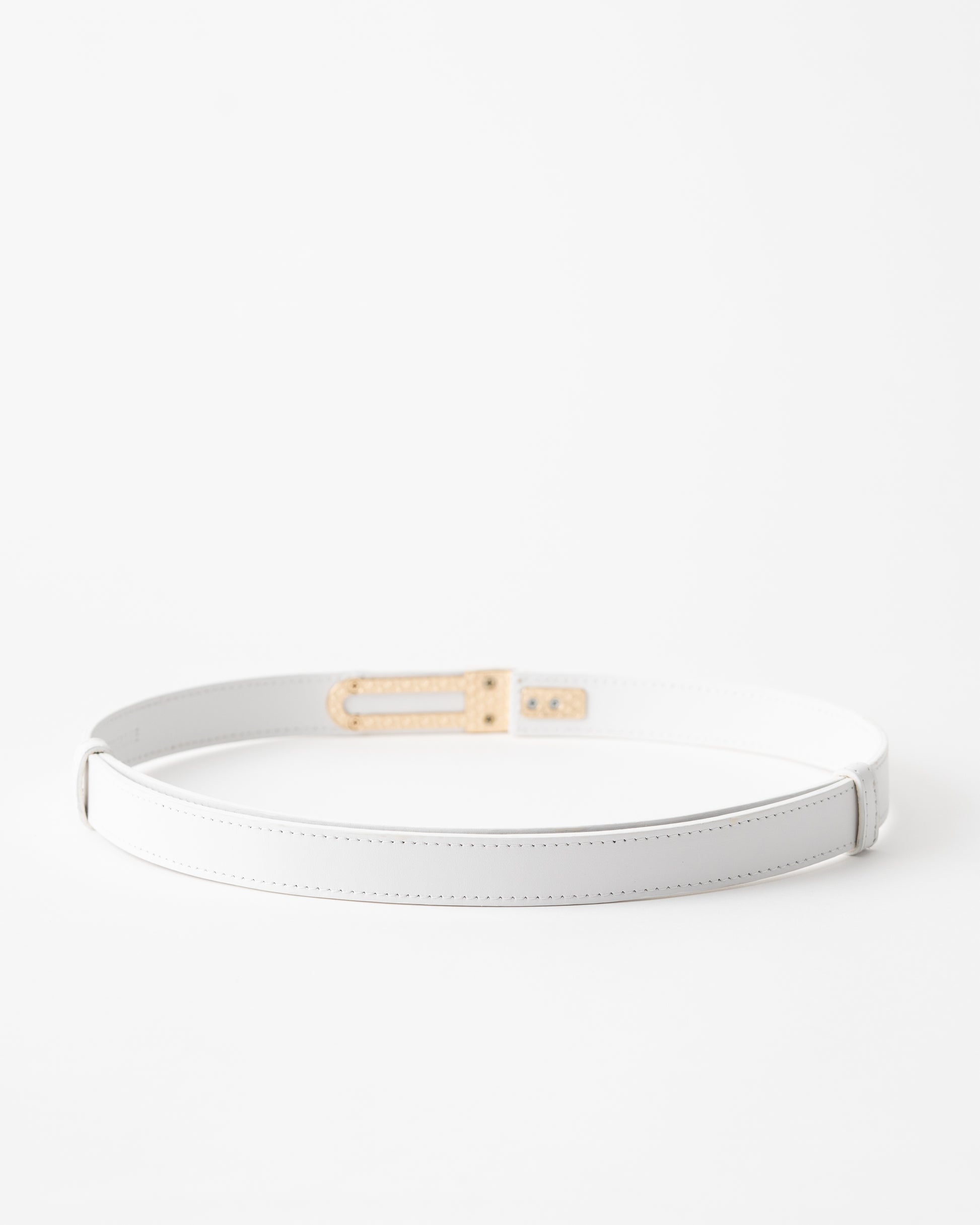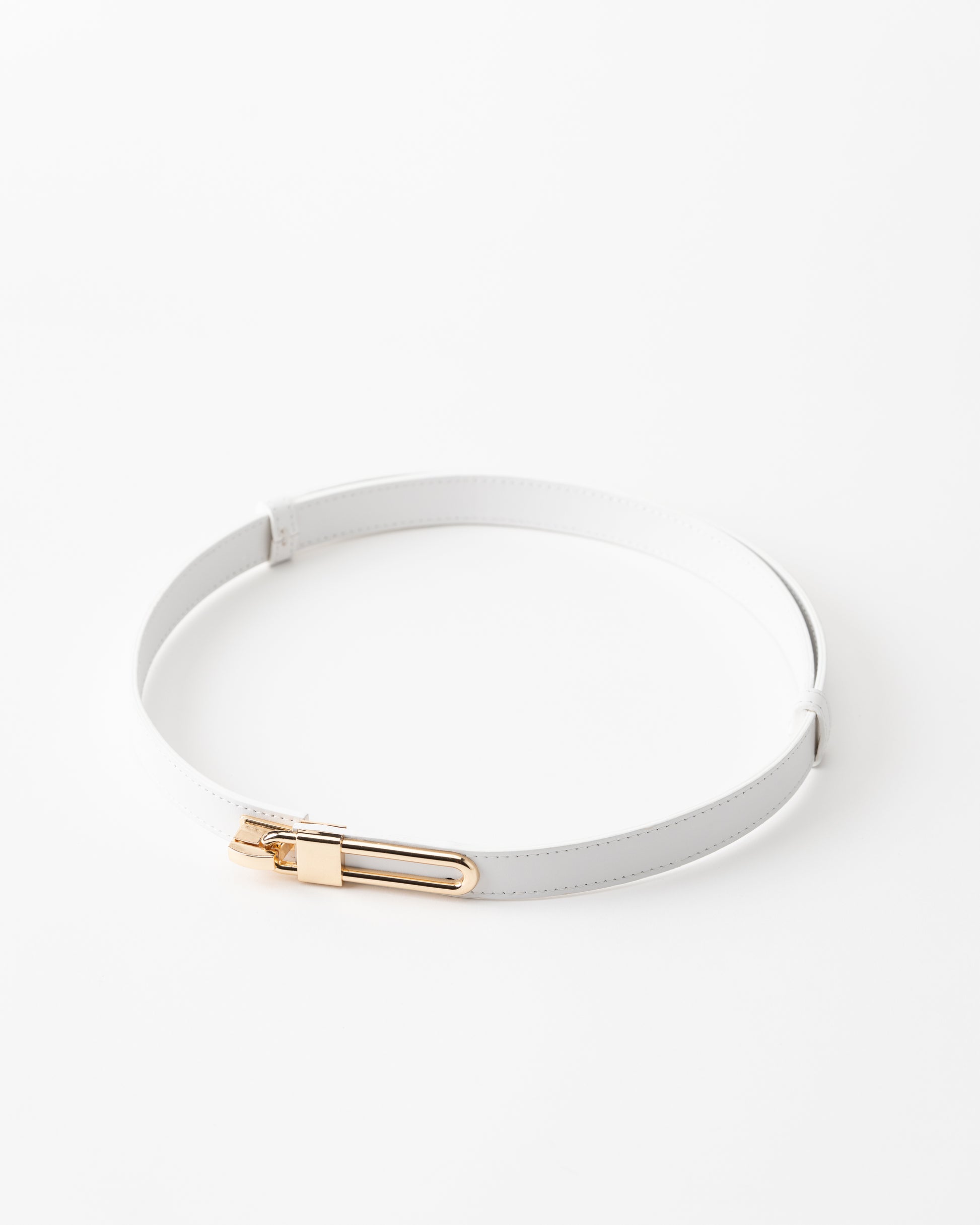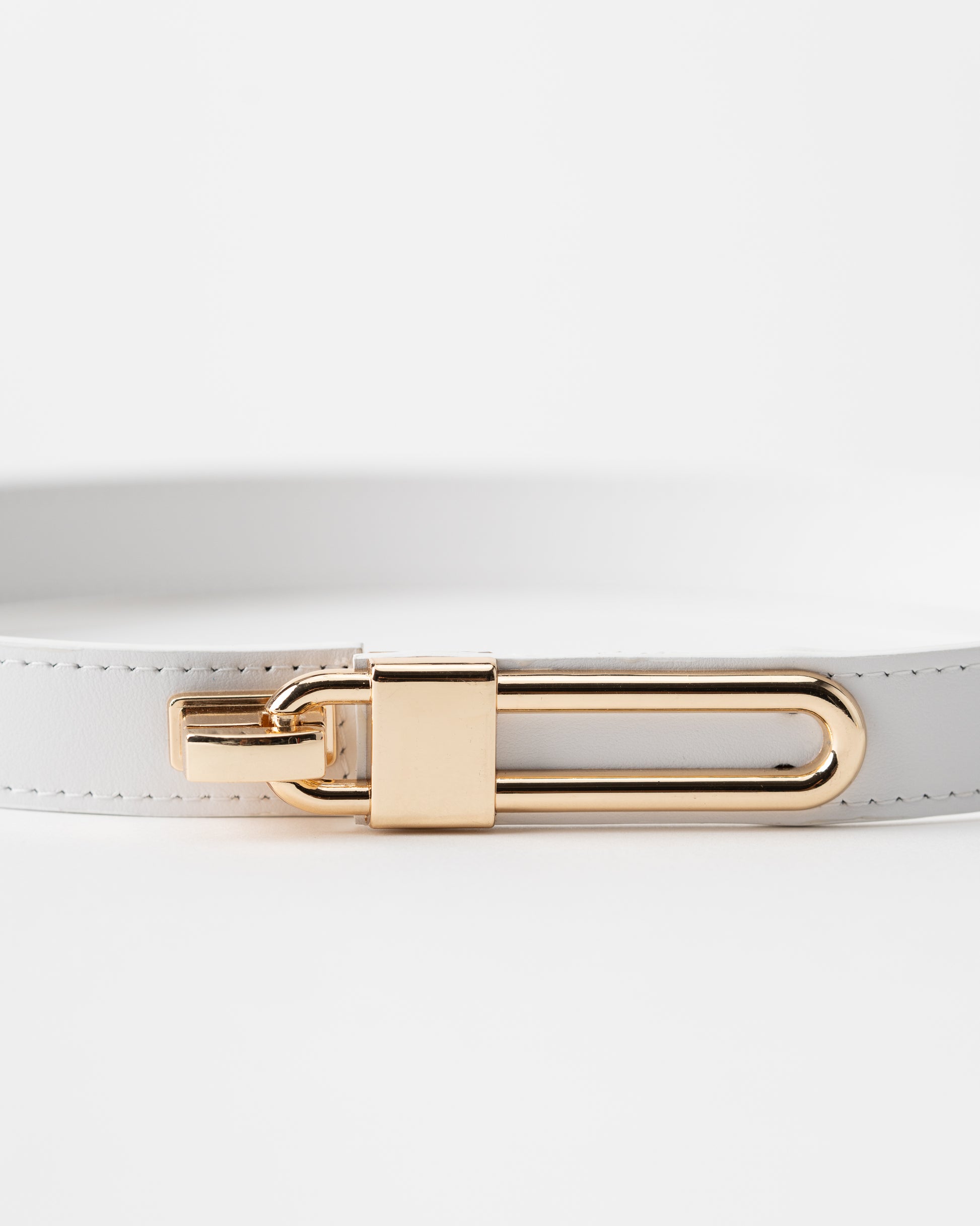 Add a touch of refinement to any outfit with this sleek leather belt. Crafted from high-quality black leather, this belt is designed to bring sophistication and elegance to your wardrobe. The standout feature is the unique gold-tone clasp, which mirrors a modern, minimalist design while providing secure and stylish closure. This versatile accessory is perfect for both casual and formal wear, adding an effortless luxury touch to jeans, trousers, or dresses.