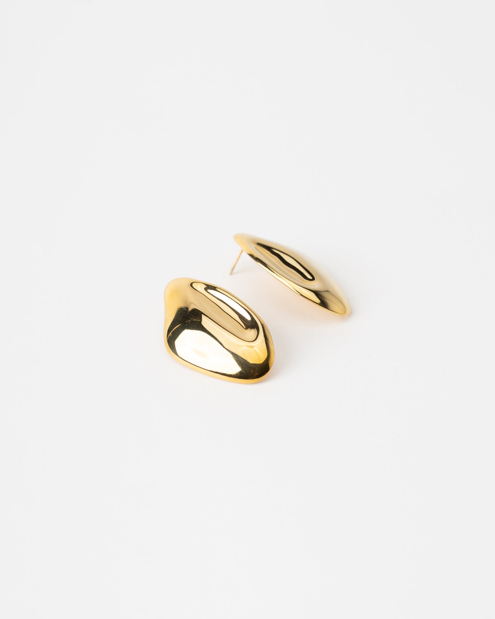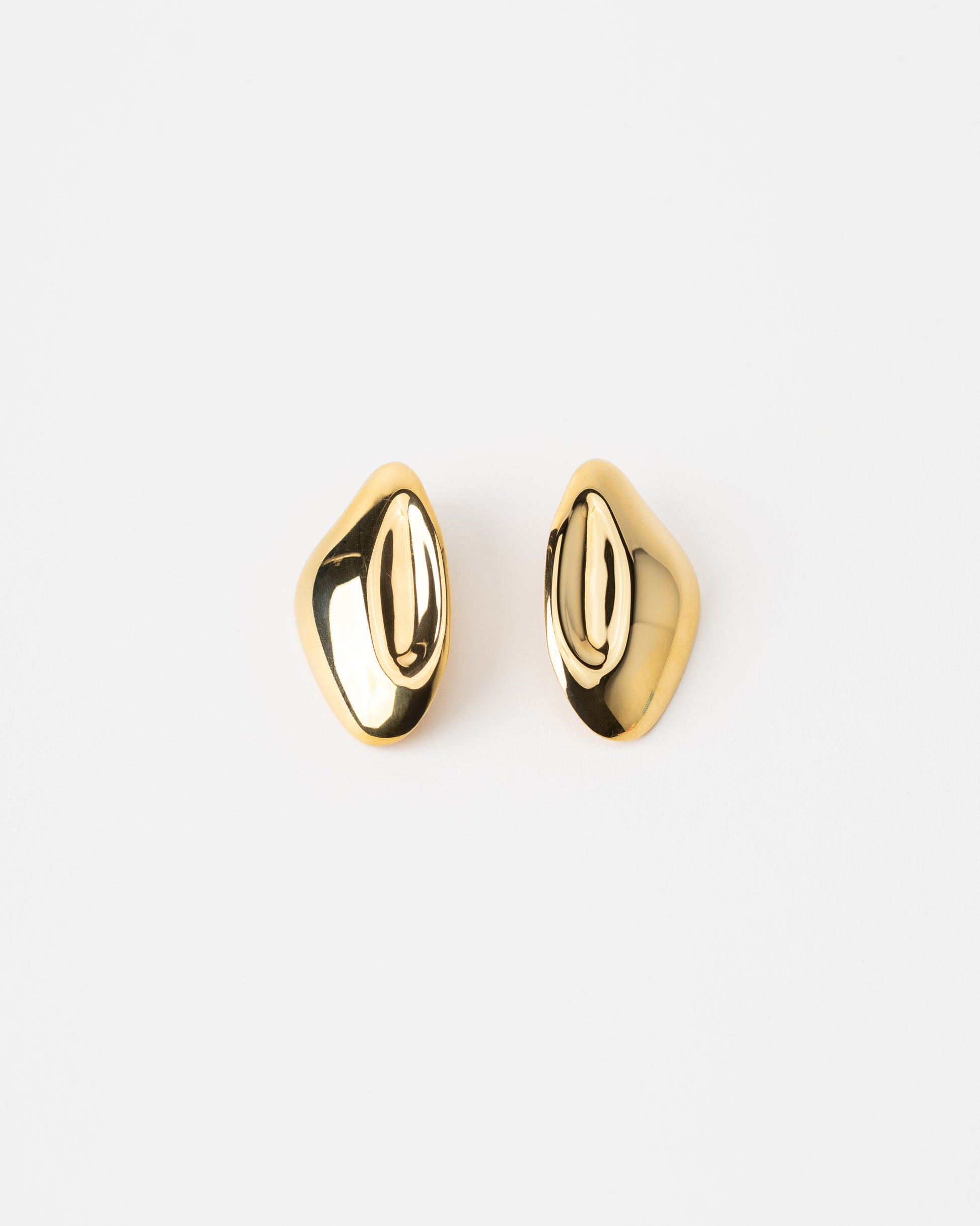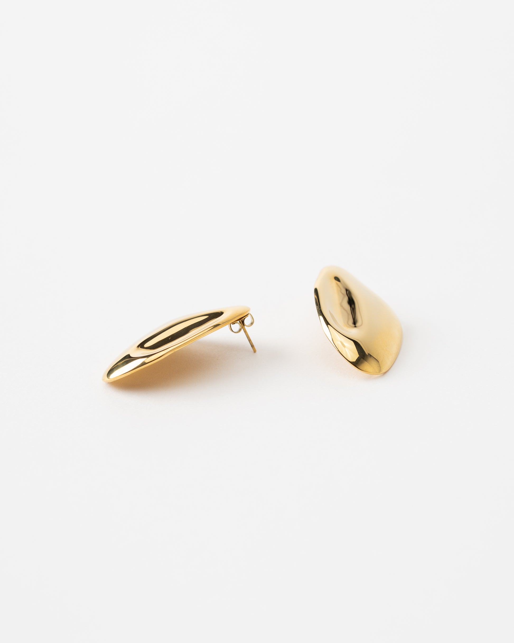 Elevate your look with these sculptural, gold-toned earrings designed to capture light and movement effortlessly. Featuring an organic, fluid shape, these statement pieces evoke the beauty of natural forms while adding a bold, contemporary touch to any outfit. Crafted with a high-shine finish, they offer a luxurious, artful presence — perfect for those who appreciate modern elegance with an edge.