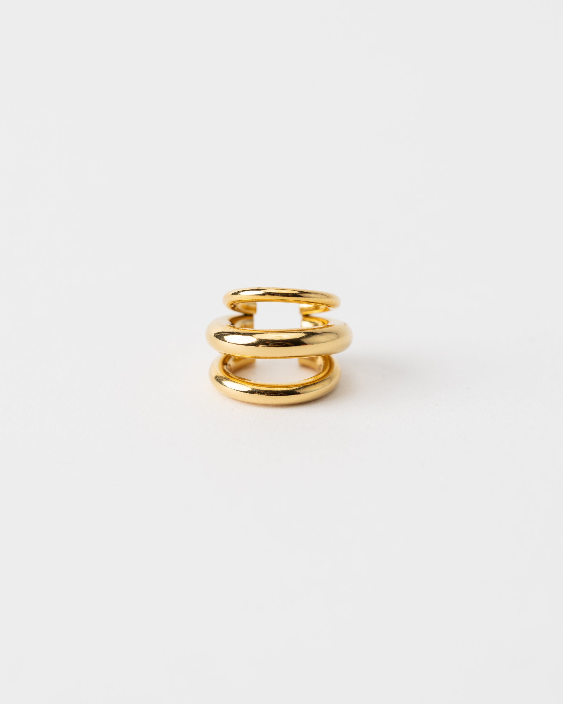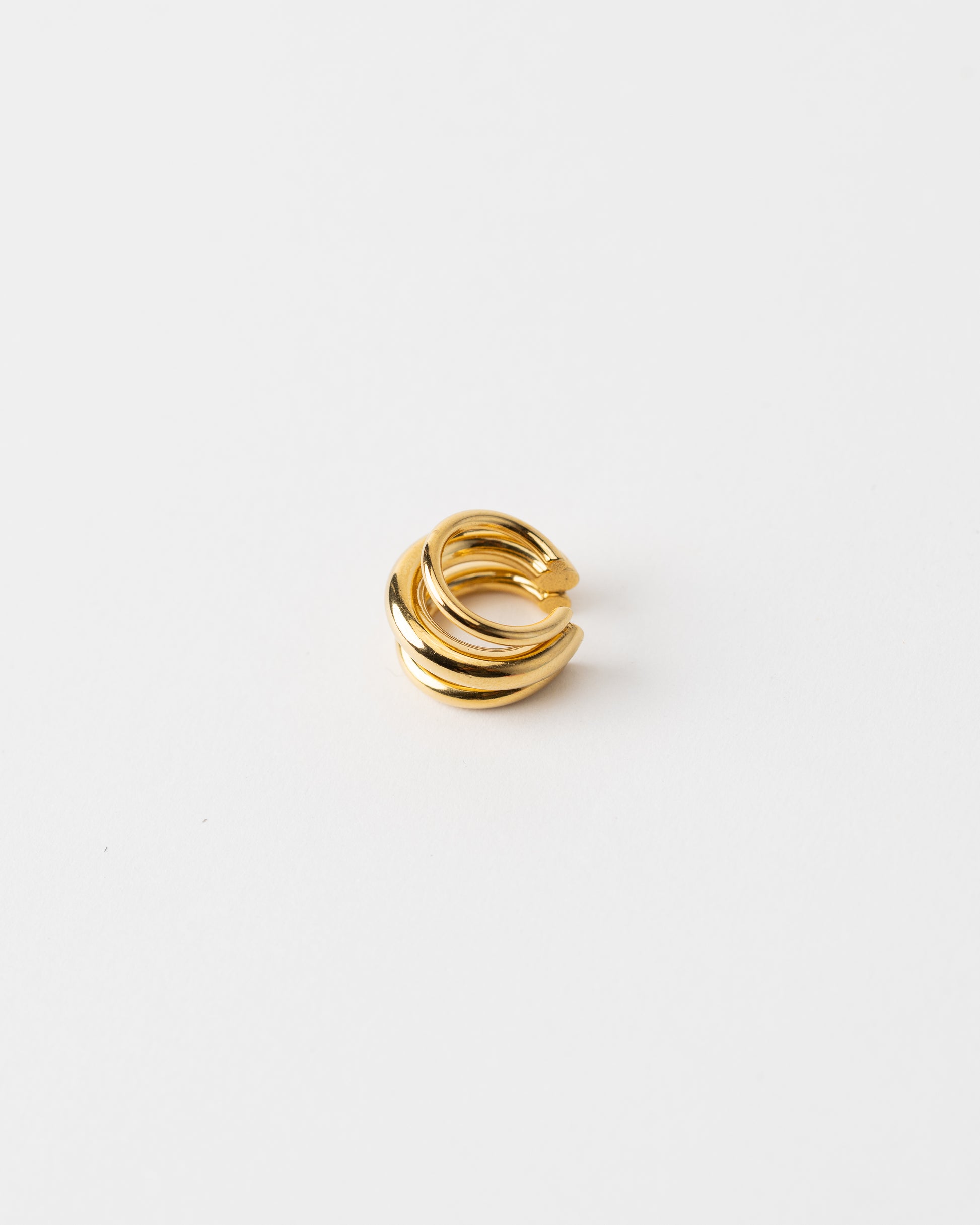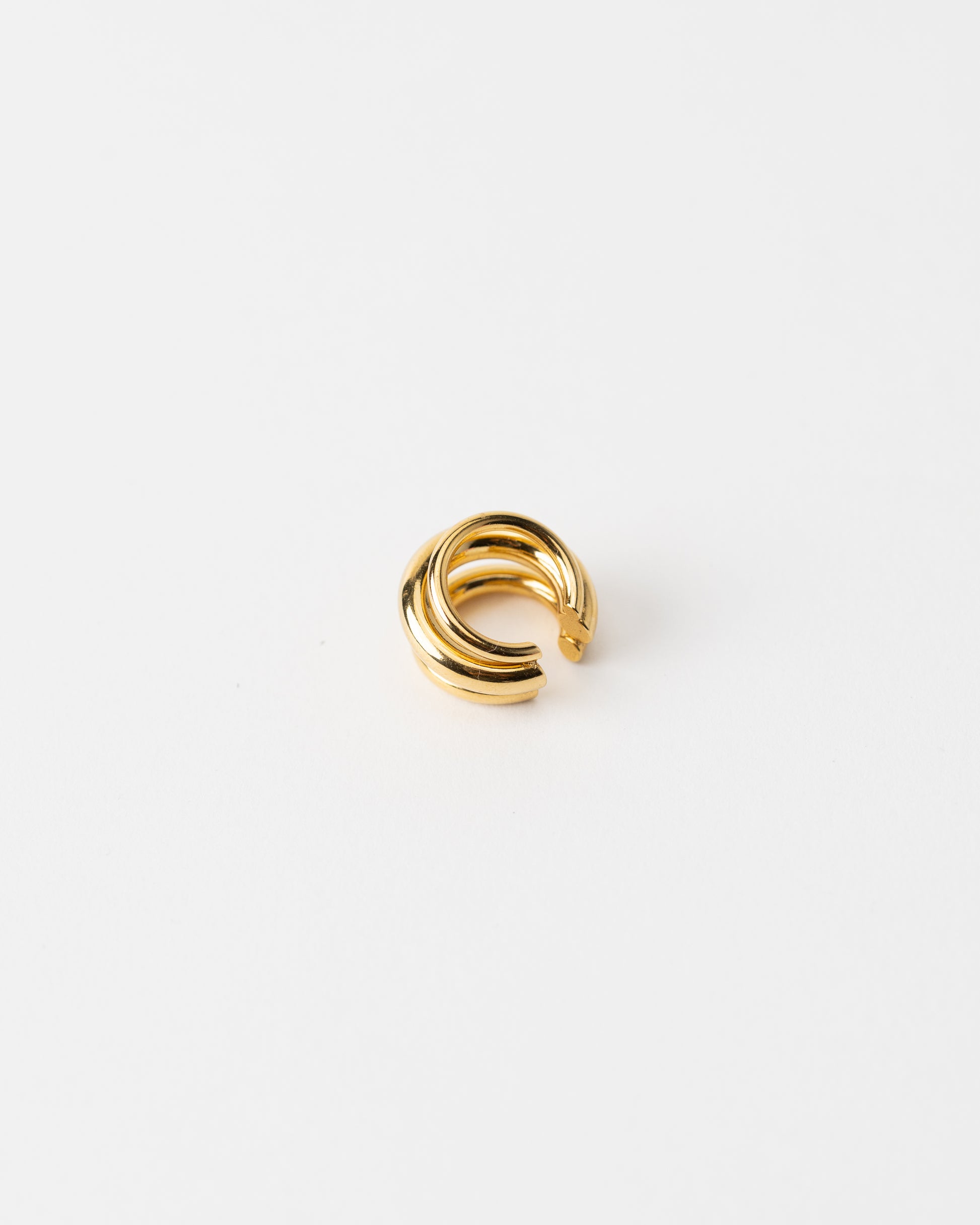 Bold yet refined, this 18K gold-plated cuff is a statement piece that embraces organic elegance with a contemporary twist. Its fluid spiral form wraps gracefully around the ear, echoing natural curves and modern minimalism. Waterproof and finished with an advanced anti-vernish coating, this piece resists tarnish and is designed to last through everyday wear and beyond.