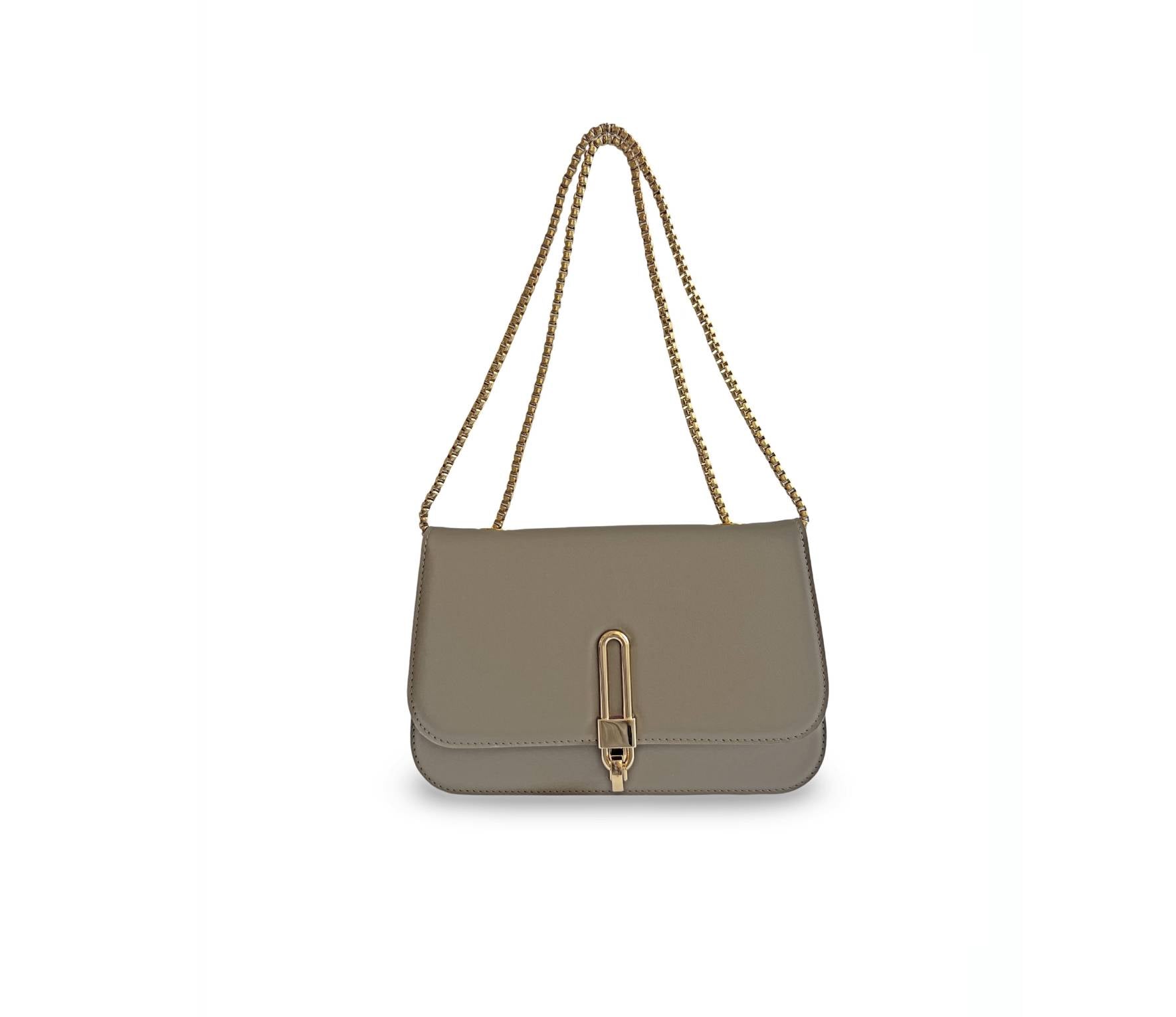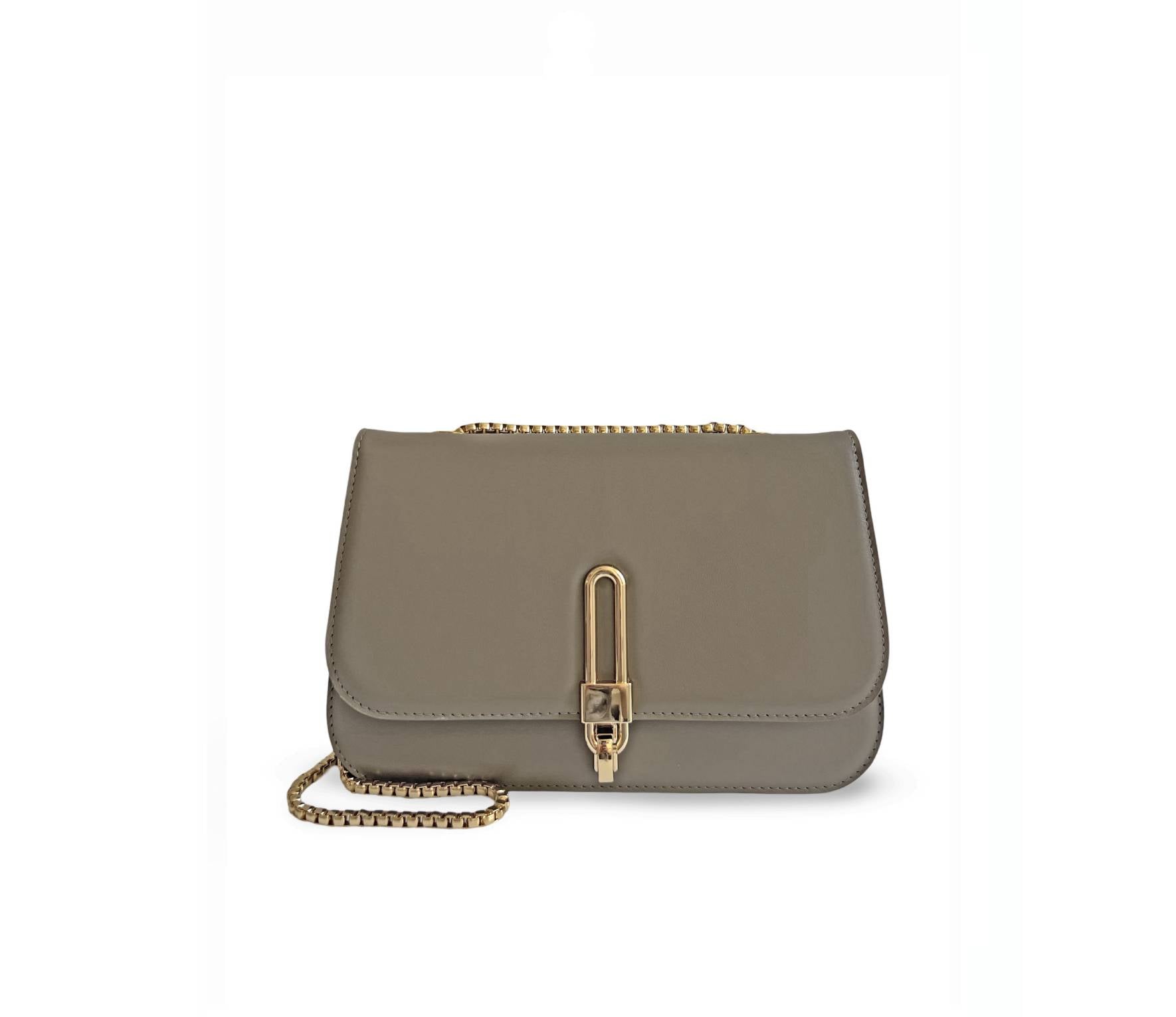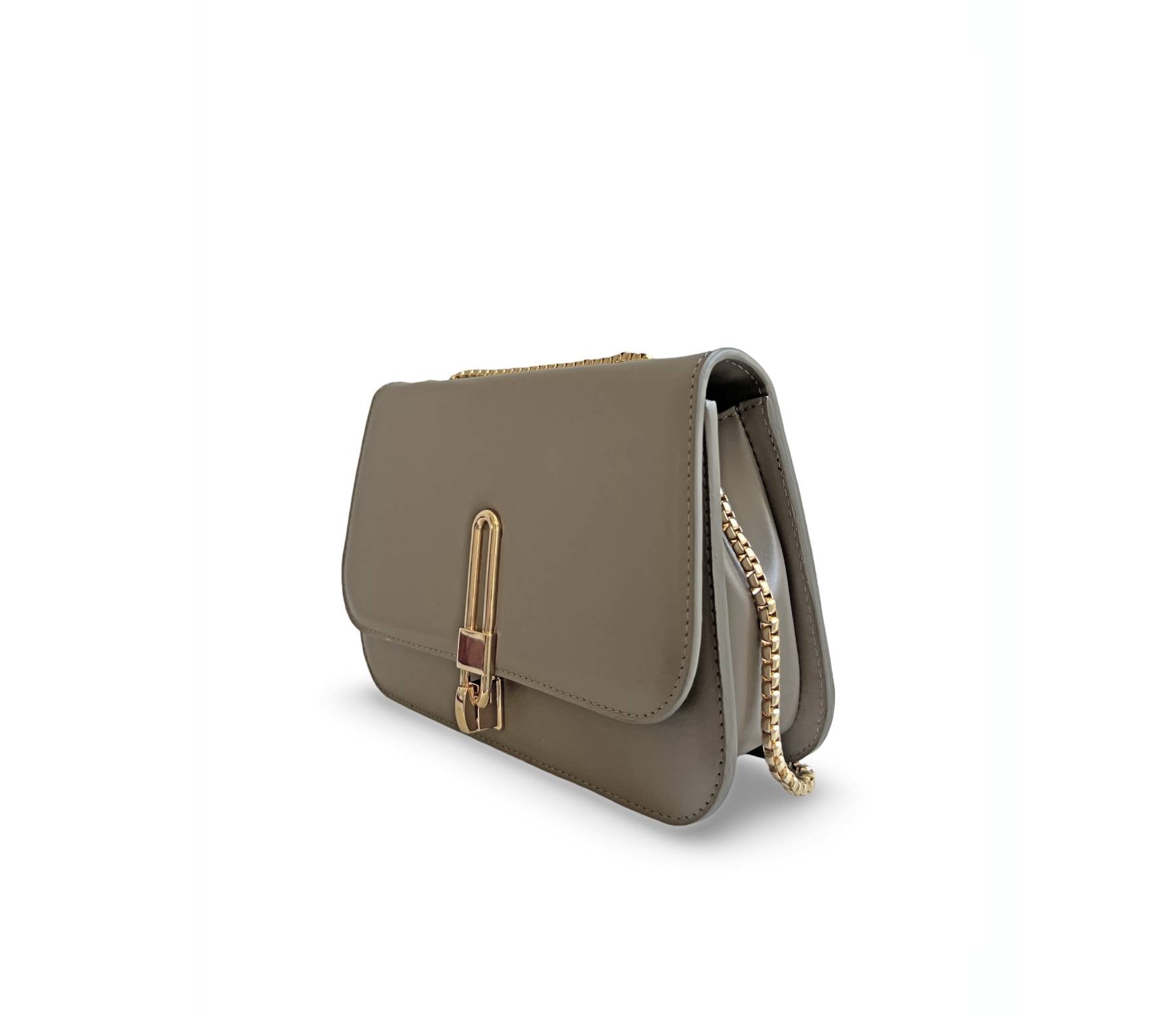 Geanta ideală de seară, Croisette, are o siluetă structurată sofisticată și prezintă o placă aurie pentru deschidere și închidere, ceea ce o face atât elegantă, cât și modernă. Actualizată cu un lanț gros de aur, îndrăzneț și atrăgător, Croisette poate fi purtată peste umăr pentru un look statement sau ascunsă sub braț. Interiorul din piele întoarsă ecologică are un buzunar tip slide pentru a păstra toate obiectele în siguranță, cu suficient spațiu pentru o poșetă, telefon și alte obiecte esențiale.