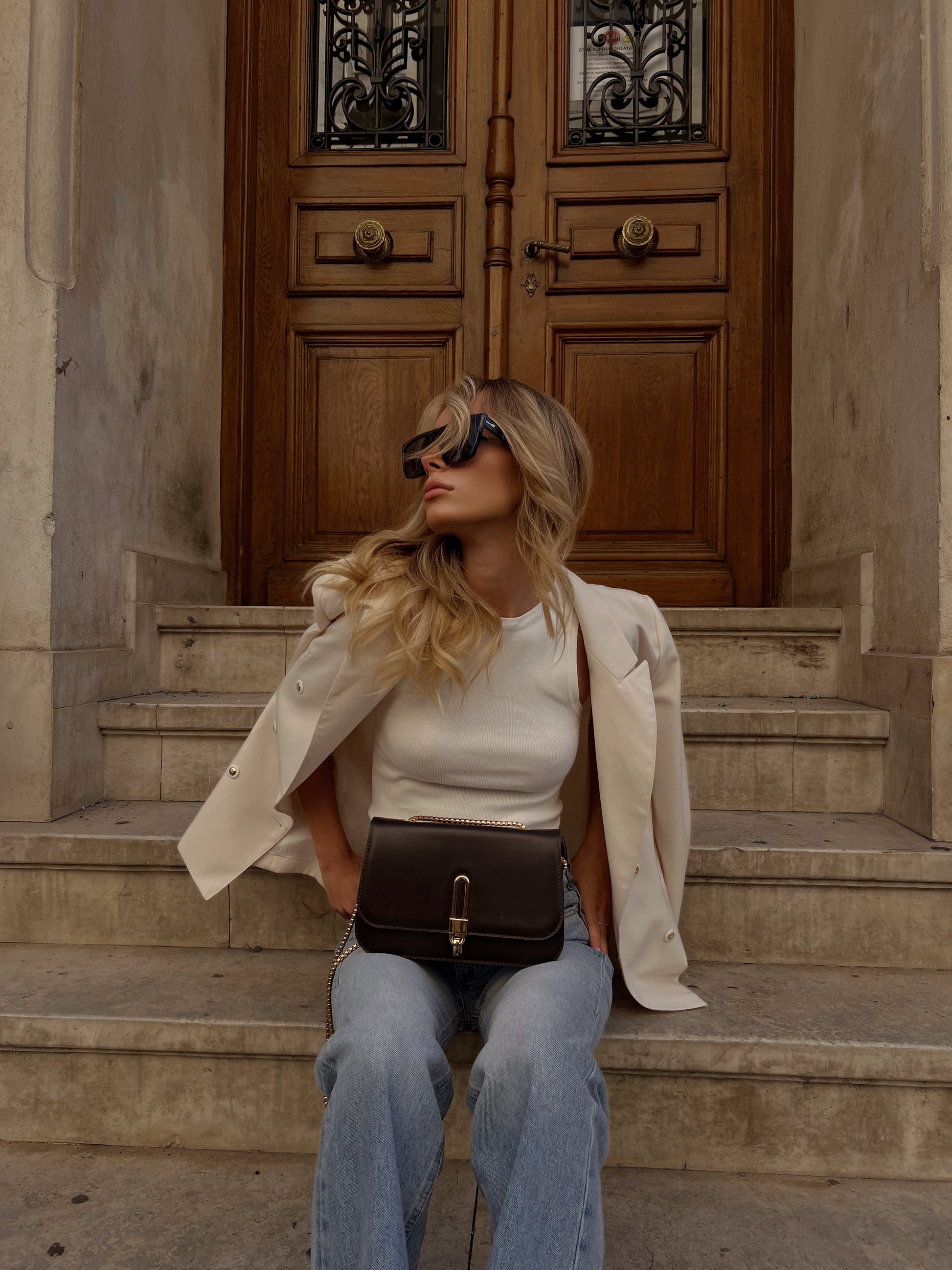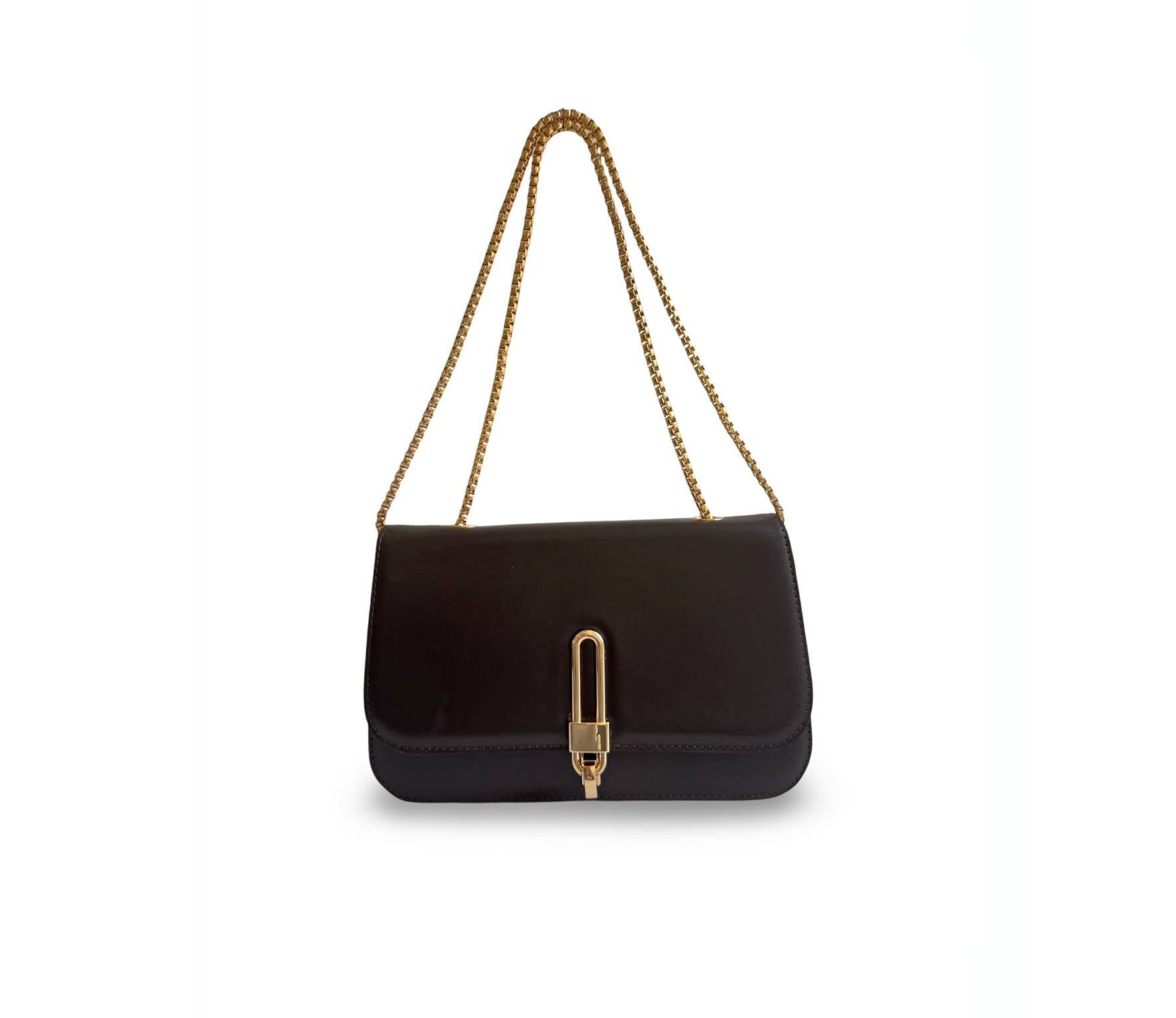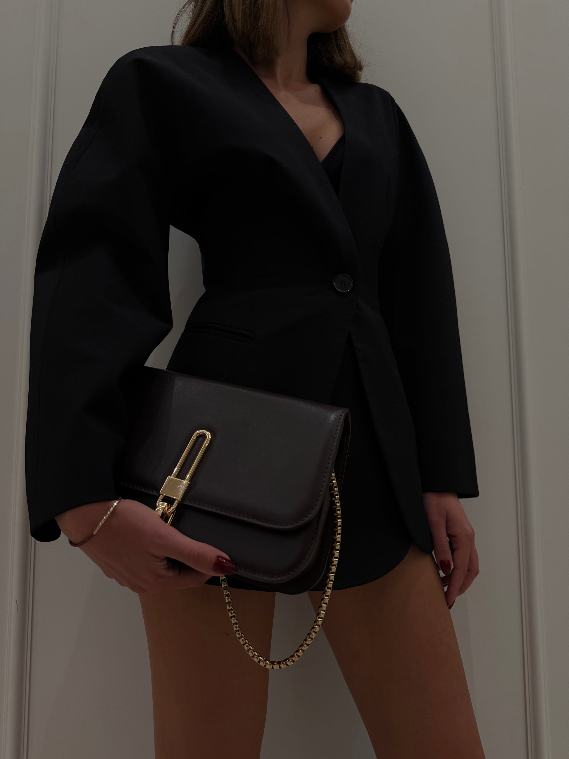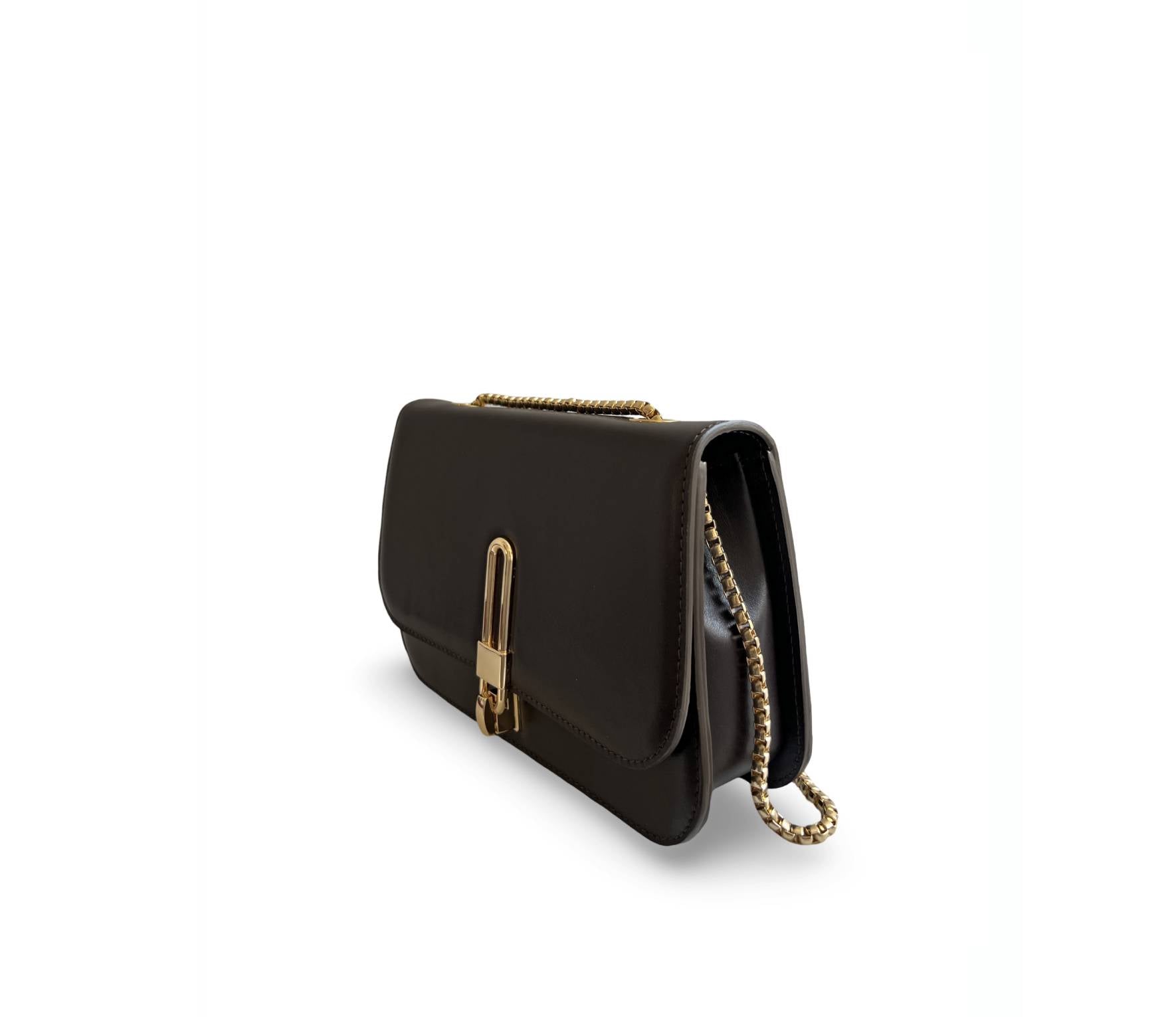 Geanta ideală de seară, Croisette, are o siluetă structurată sofisticată și prezintă o placă aurie pentru deschidere și închidere, ceea ce o face atât elegantă, cât și modernă. Actualizată cu un lanț gros de aur, îndrăzneț și atrăgător, Croisette poate fi purtată peste umăr pentru un look statement sau ascunsă sub braț. Interiorul din piele întoarsă ecologică are un buzunar tip slide pentru a păstra toate obiectele în siguranță, cu suficient spațiu pentru o poșetă, telefon și alte obiecte esențiale.