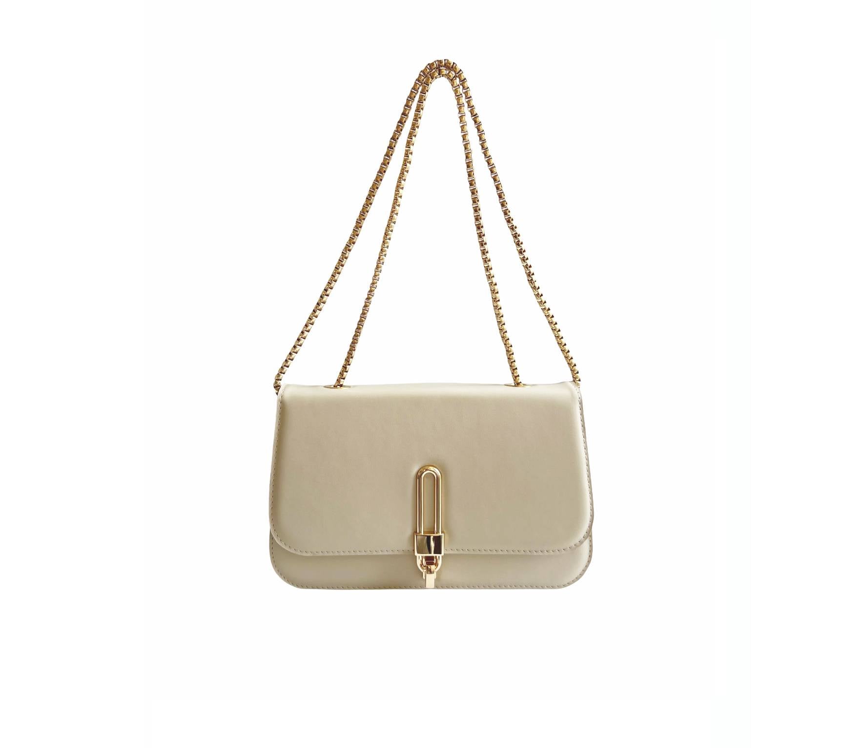 Geanta ideală de seară, Croisette, are o siluetă structurată sofisticată și prezintă o placă aurie pentru deschidere și închidere, ceea ce o face atât elegantă, cât și modernă. Actualizată cu un lanț gros de aur, îndrăzneț și atrăgător, Croisette poate fi purtată peste umăr pentru un look statement sau ascunsă sub braț. Interiorul din piele întoarsă ecologică are un buzunar tip slide pentru a păstra toate obiectele în siguranță, cu suficient spațiu pentru o poșetă, telefon și alte obiecte esențiale.