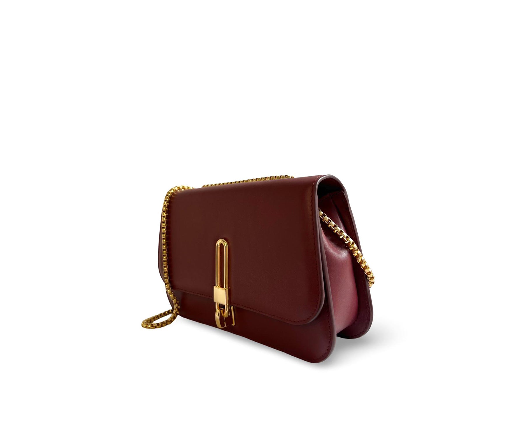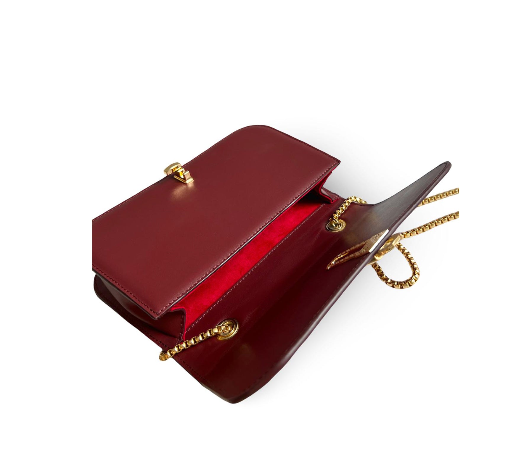 Geanta ideală de seară, Croisette, are o siluetă structurată sofisticată și prezintă o placă aurie pentru deschidere și închidere, ceea ce o face atât elegantă, cât și modernă. Actualizată cu un lanț gros de aur, îndrăzneț și atrăgător, Croisette poate fi purtată peste umăr pentru un look statement sau ascunsă sub braț. Interiorul din piele întoarsă ecologică are un buzunar tip slide pentru a păstra toate obiectele în siguranță, cu suficient spațiu pentru o poșetă, telefon și alte obiecte esențiale.