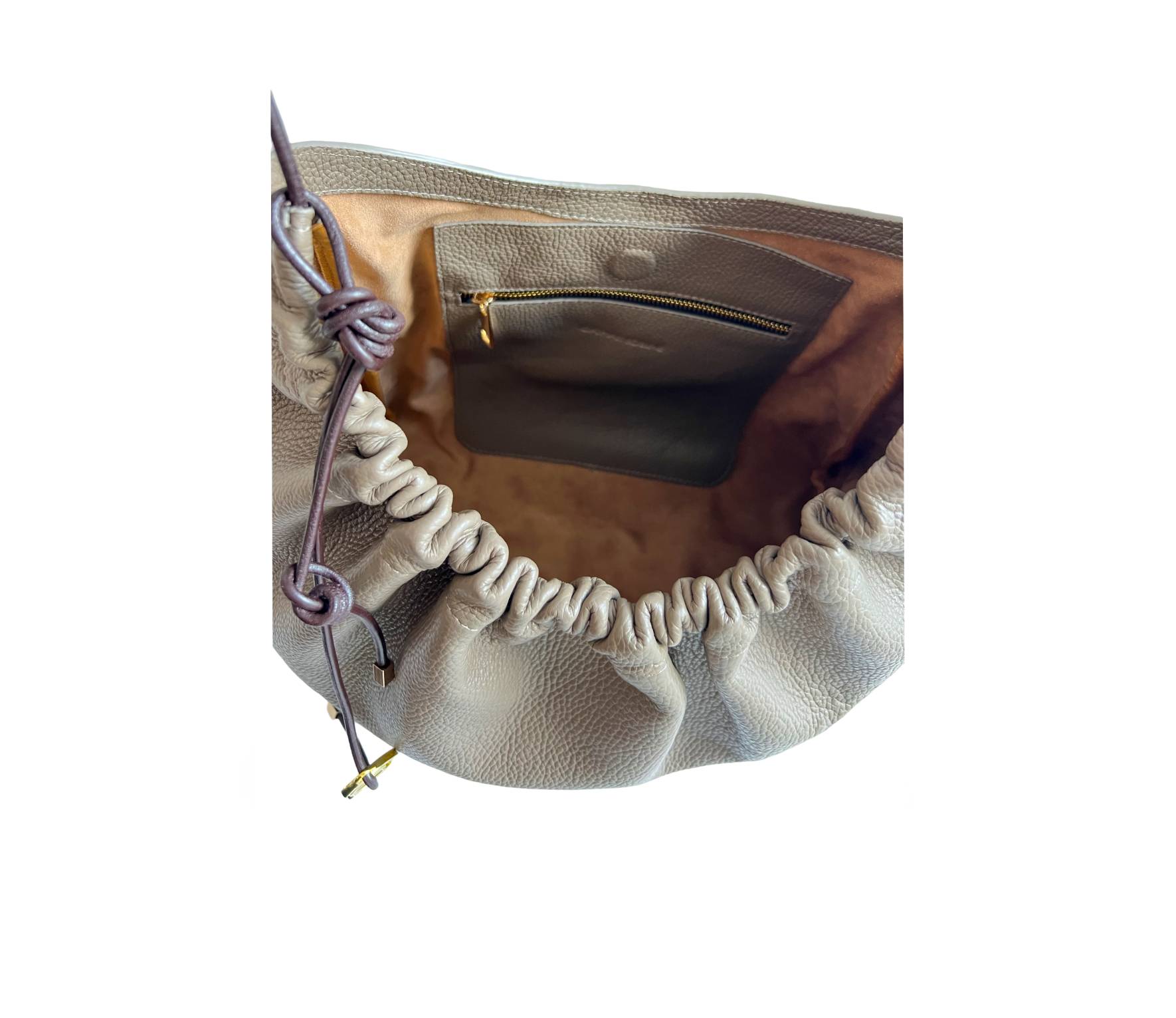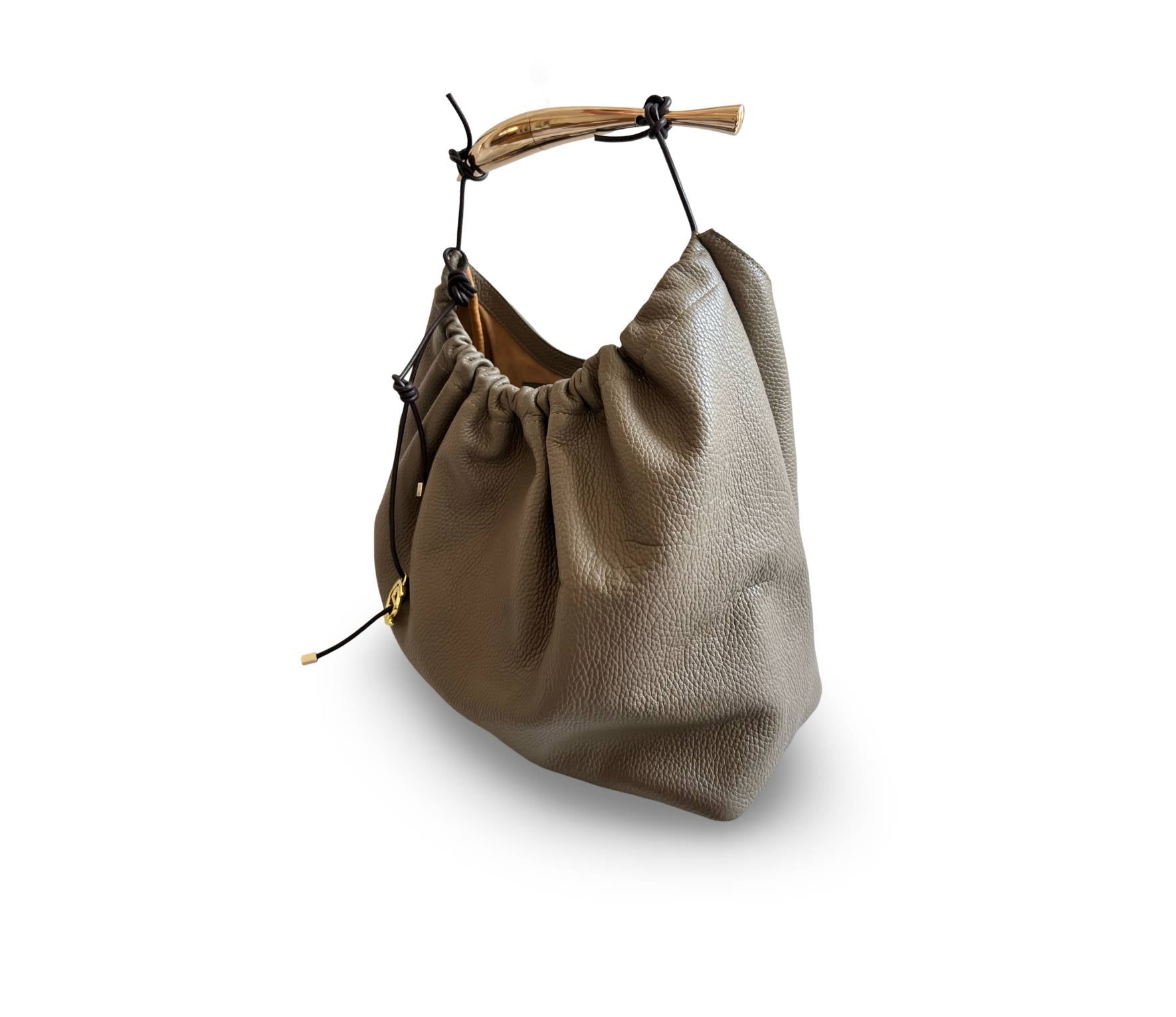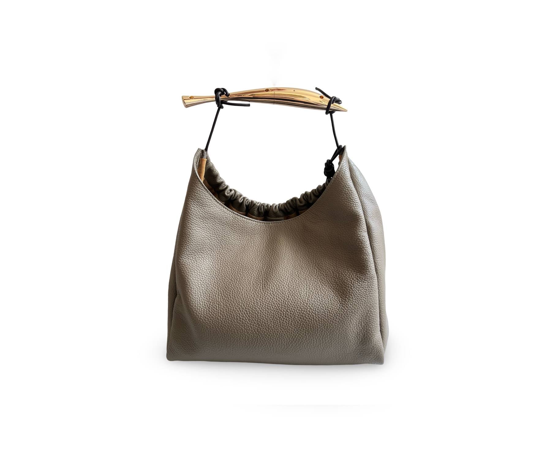 Geanta Mermaid Satchel este o geantă relaxată, moale ca untul, realizată manual din piele italiană texturată, sustenabilă. Acest stil simplu conferă o sofisticare lejeră, cu detalii distinctive, încrețite, și un accesoriu de umăr gros, auriu. În interior, un buzunar spațios din piele cu fermoar pentru esențialele zilnice. O închidere magnetică acoperită cu piele asigură siguranța tuturor lucrurilor. Perfectă pentru a-ți găzdui laptopul și toate visele tale.
