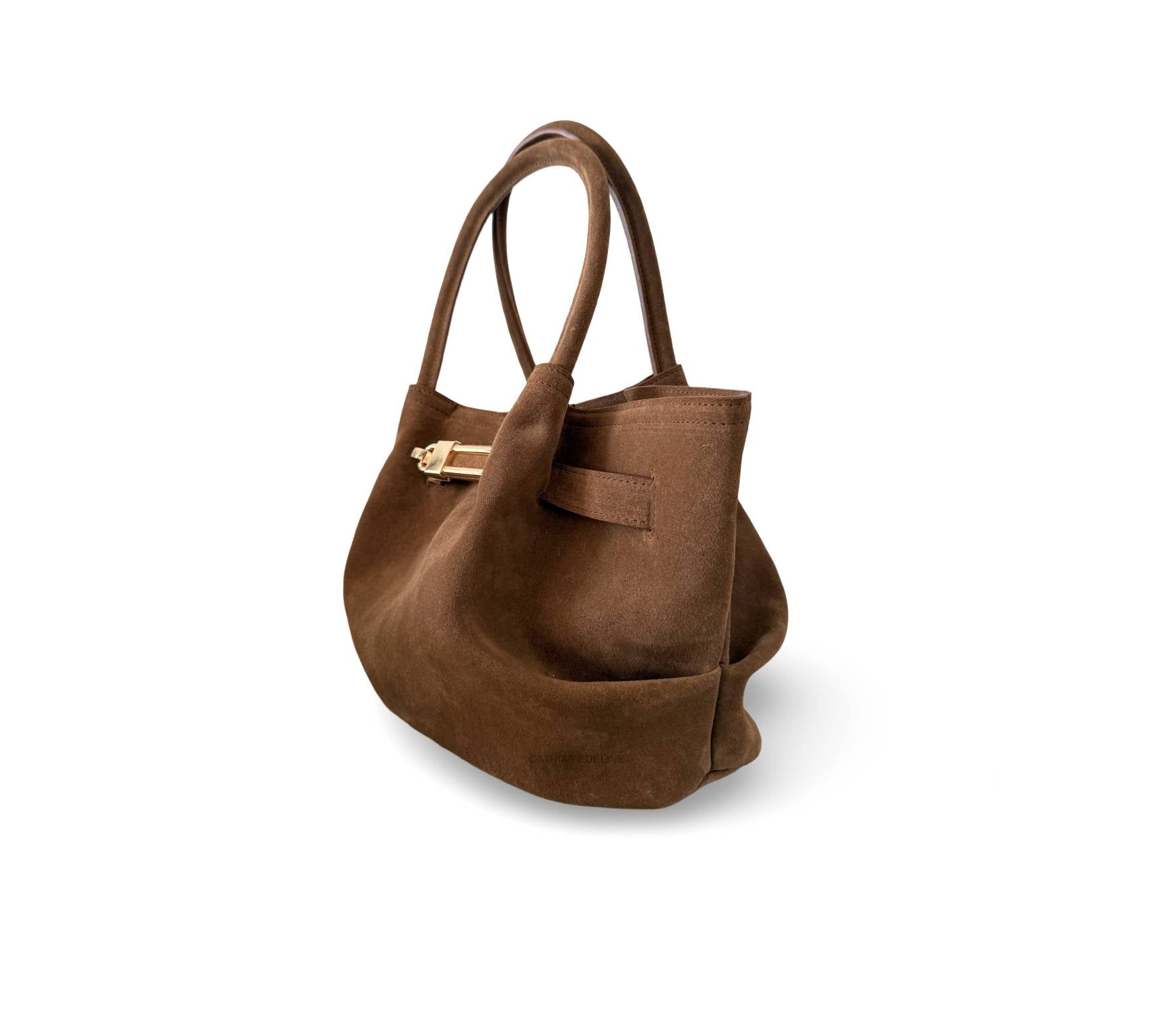 Geanta tote Odyssey, cu silueta sa modernă, dar atemporală, și finisajul subtil de lux, o transformă în geanta perfectă pentru zi. Această geantă tote are un interior spațios, perfect pentru a transporta toate lucrurile esențiale de zi cu zi. Include un buzunar intern pentru a te ajuta să rămâi organizat, păstrând ușor accesibile obiectele mai mici, cum ar fi telefonul, cheile și portofelul. poate fi închisă în siguranță cu un magnet intern central. Mânerele tubulare confortabile stau frumos în curbura cotului sau pot fi ținute în mână. Baza este construită cu pliuri triunghiulare pe fiecare parte și îmbogățită cu picioare metalice. Această geantă are dimensiunea perfectă pentru a transporta toate lucrurile esențiale. Ridicați-vă stilul de zi cu zi cu această geantă rafinată din piele întoarsă, perfectă pentru orice ocazie, de la zilele lucrătoare la weekenduri. Designul său elegant și senzația luxoasă o fac un accesoriu esențial pentru cei care apreciază atât moda, cât și funcționalitatea.
