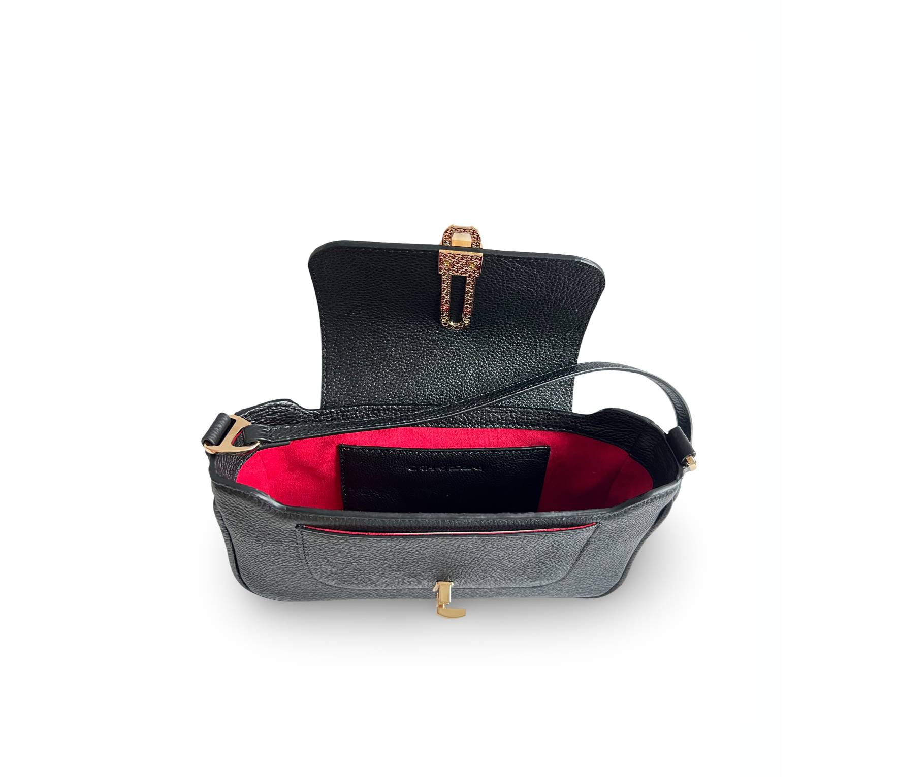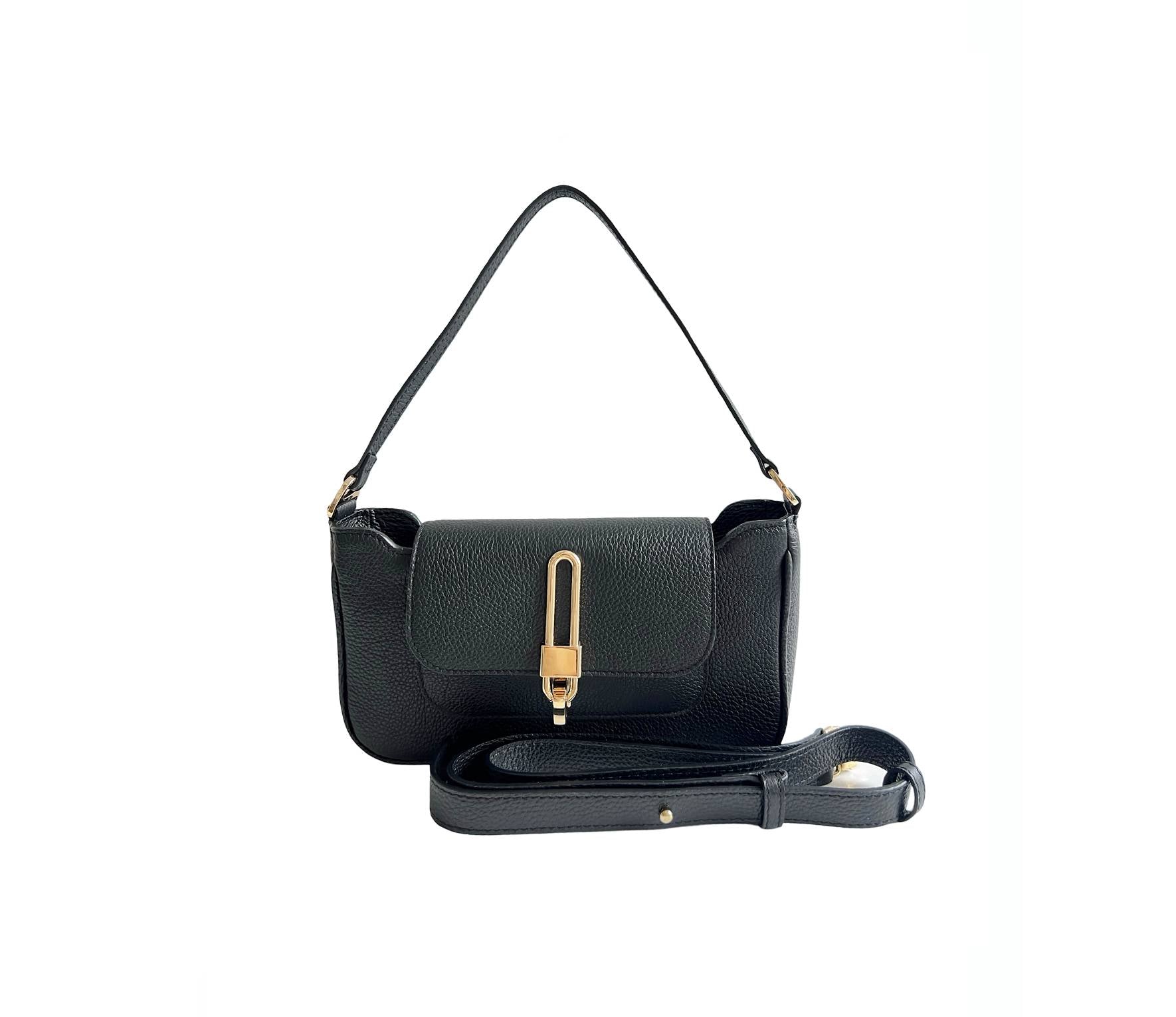 O piesă perfect proporționată, poate încăpea în ea majoritatea telefoanelor de dimensiuni mici și normale, cu spațiu suplimentar pentru obiectele esențiale ale genții, cum ar fi chei, carduri, permise. Poate fi purtată încrucișată, peste umăr sau ținută de mânerul superior.
