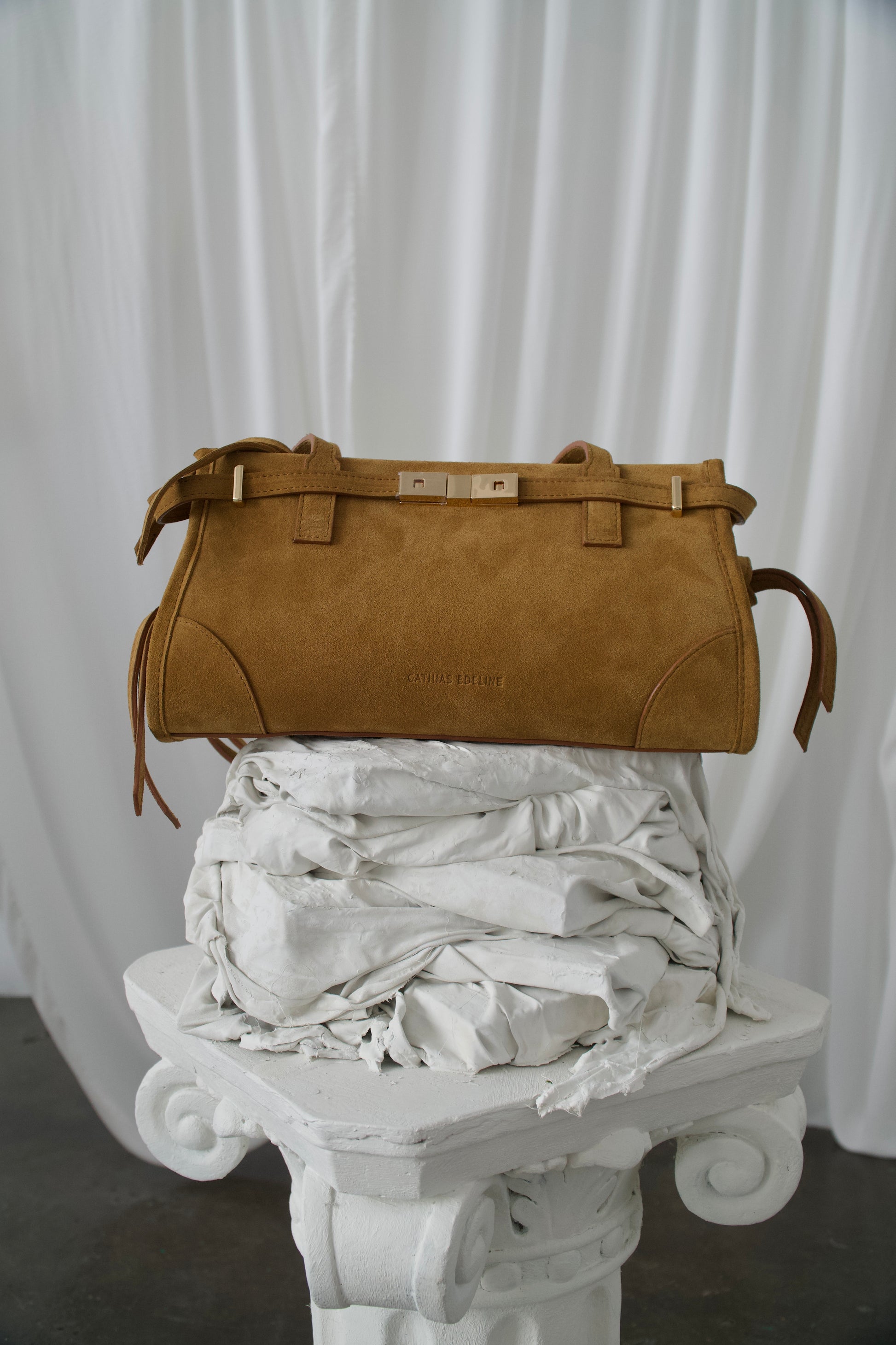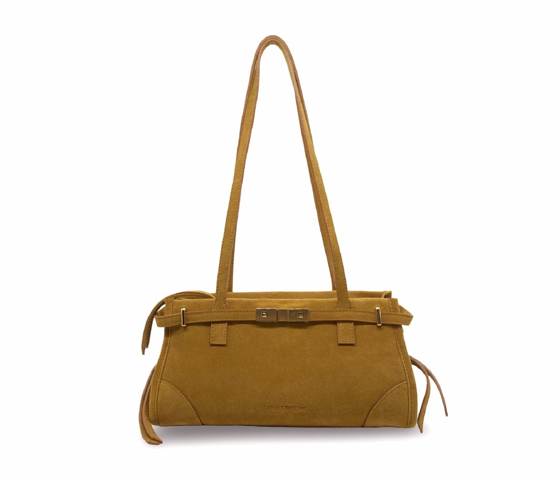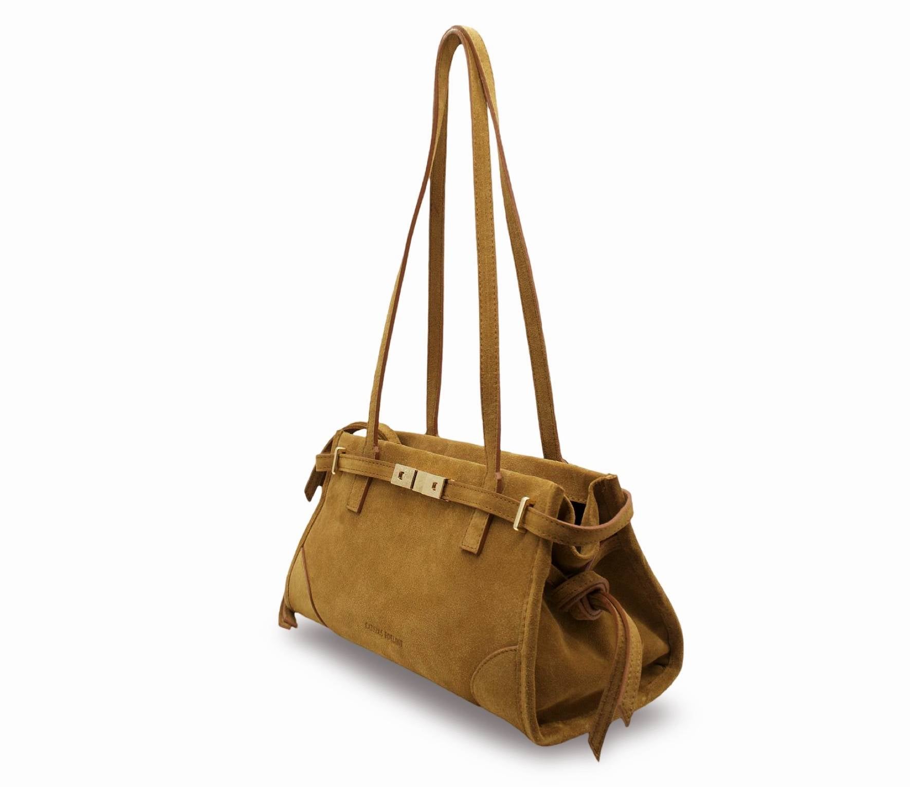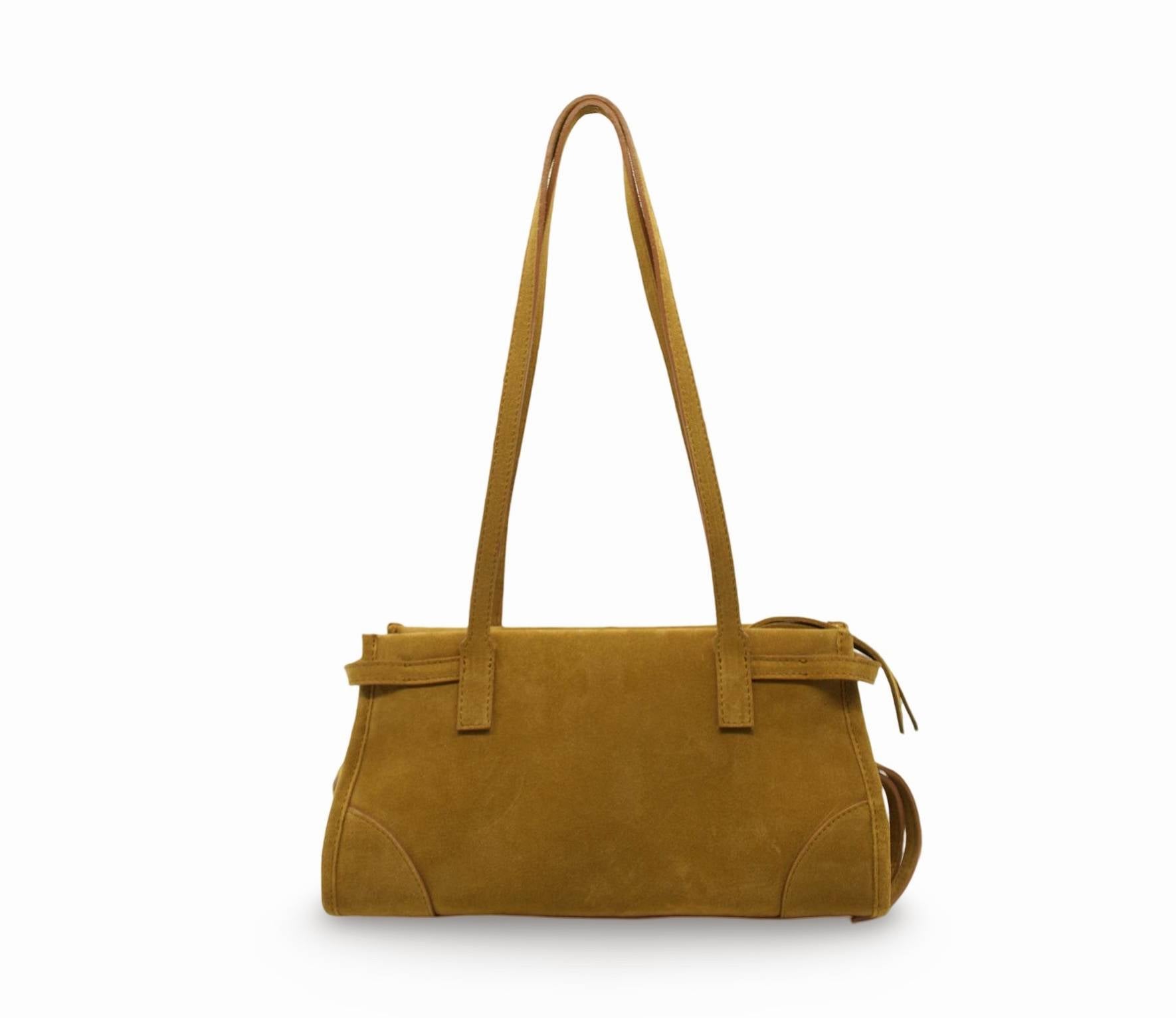 Purtare versatilă: Curelele lungi și reglabile din piele întoarsă asigură o purtare ușoară, fie pe umăr, fie în mână.