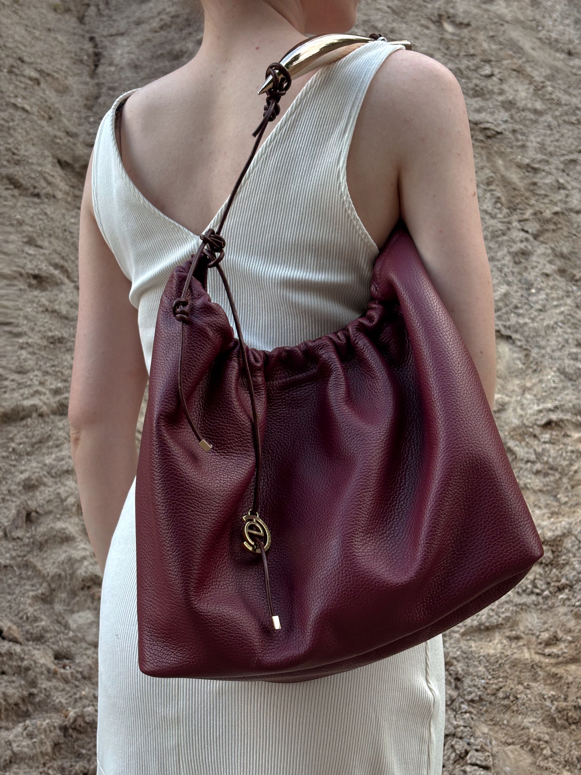 Geanta Mermaid Satchel este o geantă relaxată, moale ca untul, realizată manual din piele italiană texturată, sustenabilă. Acest stil simplu conferă o sofisticare lejeră, cu detalii distinctive, încrețite, și un accesoriu de umăr gros, auriu. În interior, un buzunar spațios din piele cu fermoar pentru esențialele zilnice. O închidere magnetică acoperită cu piele asigură siguranța tuturor lucrurilor. Perfectă pentru a-ți găzdui laptopul și toate visele tale.